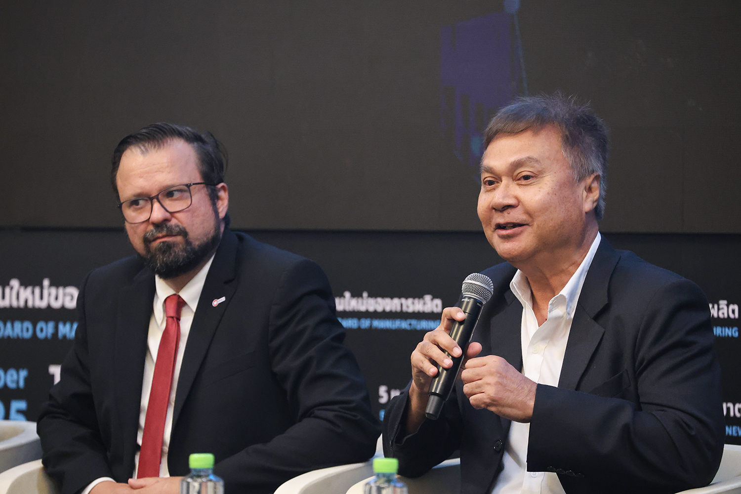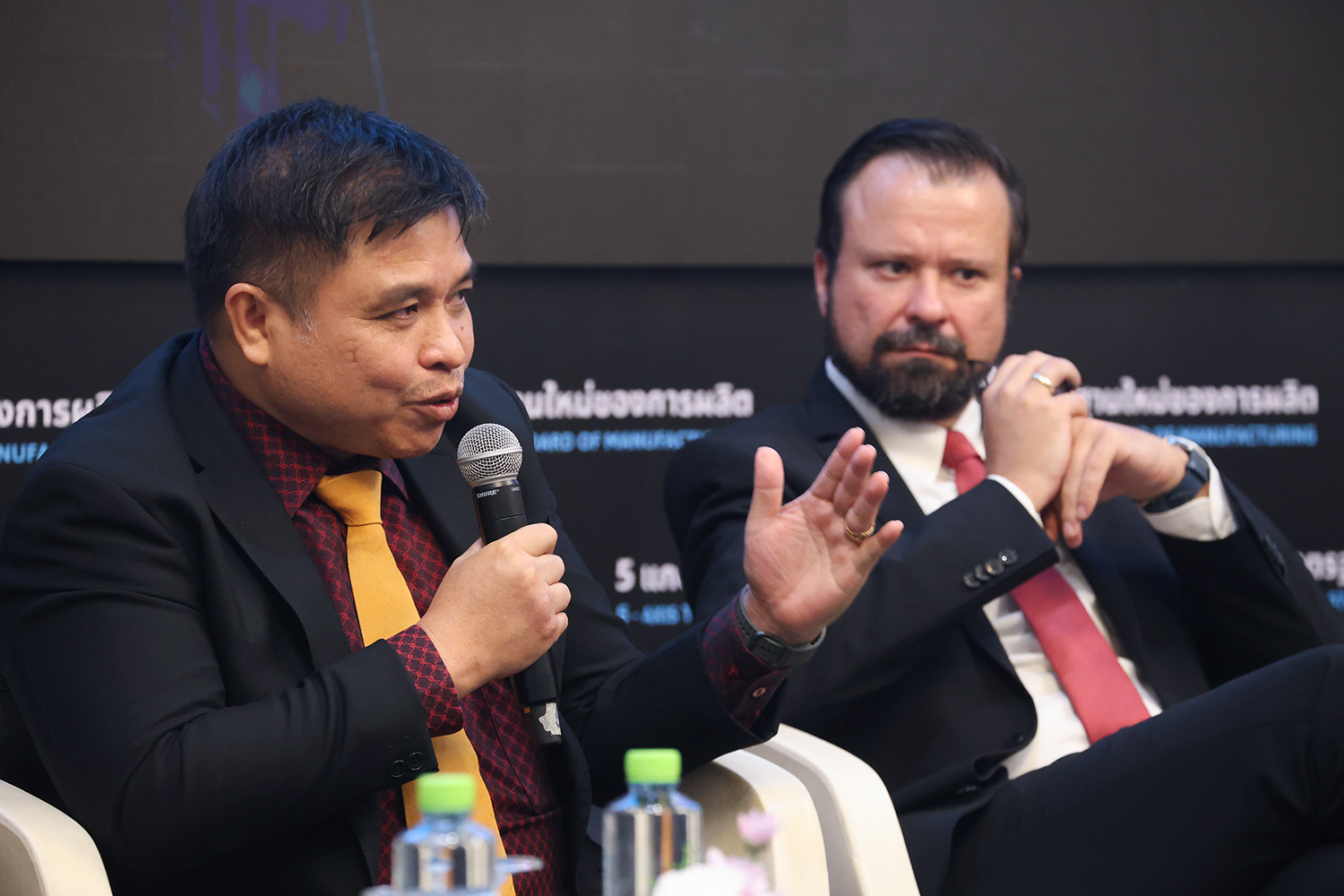 นายรัชศักดิ์ เกิดภู่ กรรมการผู้จัดการ บริษัท แมชชีนเทค จำกัด กล่าวถึง บทบาทและการพัฒนาศักยภาพผู้ประกอบการในอุตสาหกรรมการผลิตชิ้นส่วนของไทย เพื่ออยู่ในระบบนิเวศอุตสาหกรรมใหม่และอุตสาหกรรมแห่งอนาคตว่า ประเทศไทยอยู่ในสถานะผู้ผลิตชิ้นส่วนสำคัญของภูมิภาคมายาวนาน ทั้งในกลุ่มยานยนต์ ชิ้นส่วนอิเล็กทรอนิกส์ และแม่พิมพ์ โดยมีจุดแข็งด้านแรงงานฝีมือ ระบบซัพพลายเชนที่เข้มแข็ง และมาตรฐานการผลิตที่เชื่อถือได้
