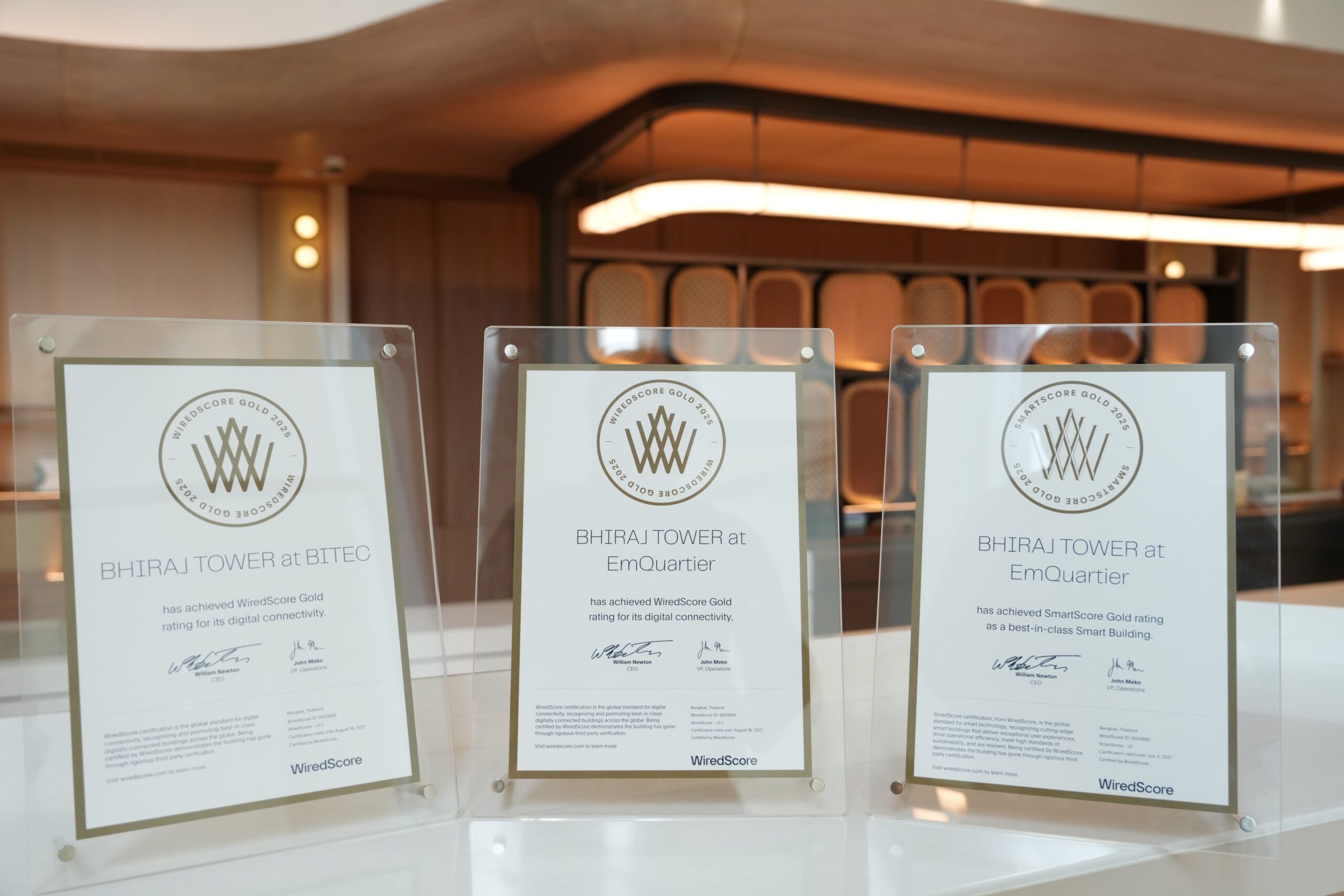 กรุงเทพฯ, 3 กันยายน 2025 – ภิรัชบุรีกรุ๊ป หนึ่งในผู้นำด้านการพัฒนาอาคารสำนักงานคุณภาพในประเทศไทย ประกาศความสำเร็จได้การรับรองมาตรฐานระดับโลกอย่าง WiredScore ระดับ Gold และ SmartScore ระดับ Gold สำหรับอาคารภิรัชทาวเวอร์ แอท เอ็มควอเทียร์ และ WiredScore ระดับ Gold สำหรับอาคารภิรัชทาวเวอร์ แอท ไบเทค ความสำเร็จในครั้งนี้สะท้อนถึงความมุ่งมั่นของ ภิรัชบุรีกรุ๊ป ในการพัฒนาอาคารสำนักงานให้เป็นอาคารอัจฉริยะ (SMART Building) ที่ตอบโจทย์ความต้องการด้านเทคโนโลยี และการเชื่อมต่อของผู้ใช้อาคารยุคดิจิทัลได้อย่างสมบูรณ์แบบ