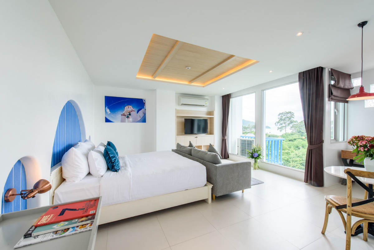 มาต่อกันที่โรงแรมสไตล์ซานโตรินี่กันบ้างค่ะ เอาใจสายมินิมอล โรงแรมตกแต่งคลุมโทนสีขาวฟ้า สะอาดตา จุดไฮไลต์ที่ไม่ควรพลาดก็ต้องสระว่ายน้ำชั้นดาดฟ้า ที่ได้ว่ายน้ำไปมองวิวทะเล ท้องฟ้า และภูเขาแบบสุดลูกหูลูกตา สวยจนไม่อยากกลับกันเลยทีเดียว