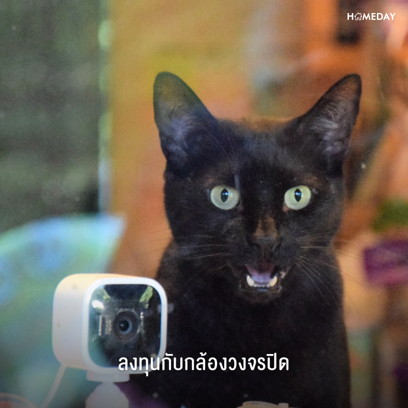 กล้องวงจรปิดในยุคนี้นั้น มีราคาเริ่มต้นที่ไม่ได้แพงเลย แถมยังสามารถสื่อสารผ่านไมค์ และตรวจเช็กน้องแมวได้แบบเรียลไทม์ตลอด 24 ชั่วโมง การติดตั้งกล้องจะช่วยให้เราจับตาดูแมวได้อย่างใกล้ชิดและให้แน่ใจว่าน้องแมวไม่ได้กำลังหาเรื่องซนให้ตัวเองได้รับอันตราย ในกรณีเลวร้ายที่อาจเกิดขึ้นได้ เช่น น้องแมวเผลอเข้าไปติดอยู่ในตู้เสื้อผ้า เราก็สามารถได้ยินเสียงร้องผ่านกล้องได้ หรือเห็นภาพย้อนหลังจากกล้องวงจรปิด ก็สามารถเรียกให้คนรู้จักที่มีกุญแจสำรองของเรา เข้ามาช่วยเหลือน้องแมวได้
