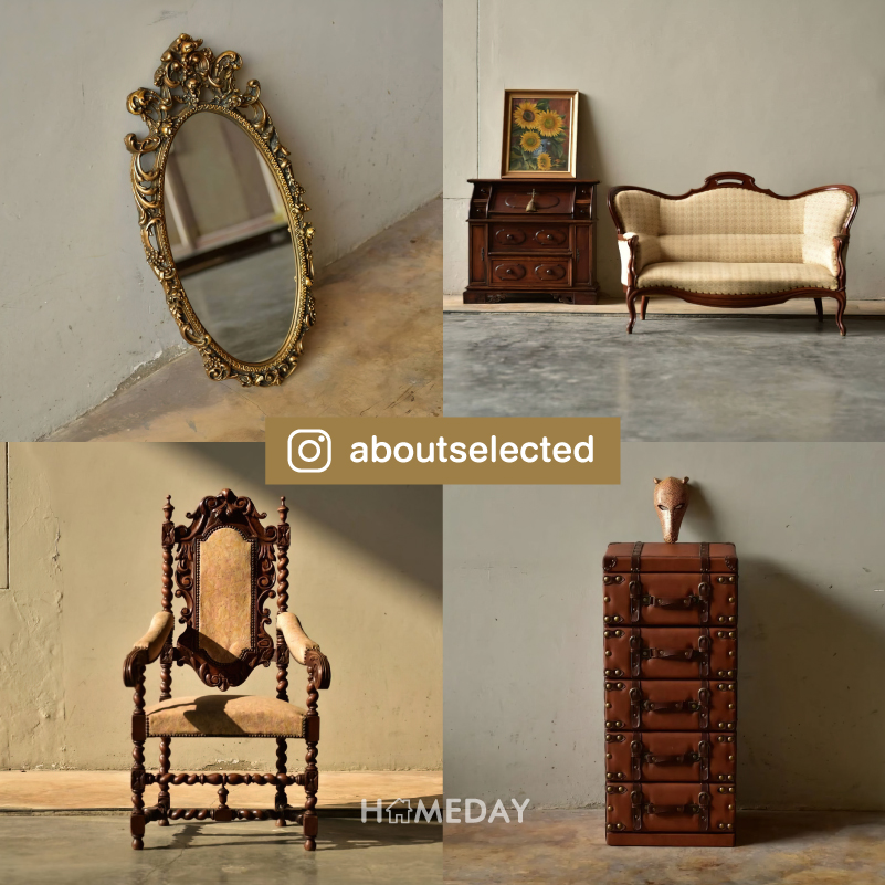 ปิดท้ายด้วยร้านเฟอร์นิเจอร์มือสอง aboutselected ร้านนี้งานสไตล์หลุยส์แบบวินเทจ ๆ งานไม้ งานหวายทั้งหลาย ที่มีความคลาสสิค ๆ ดูโบราณสักหน่อย ต้องชอบค่ะ หรือใครอยากจะเลือกบางชิ้นมามิกซ์เข้ากับสไตล์โมเดิร์นก็ไม่ว่ากันนะคะ ของร้านนี้น่ารักใหม่เหมือนใครหลายชิ้นเลย มีตั้งแต่ของตกแต่งเล็ก ๆ น้อย ๆ ไปจนถึงของชิ้นใหญ่ ๆ ใครชอบแนวนี้ก็ไปกดติดตามไว้กันได้เลย