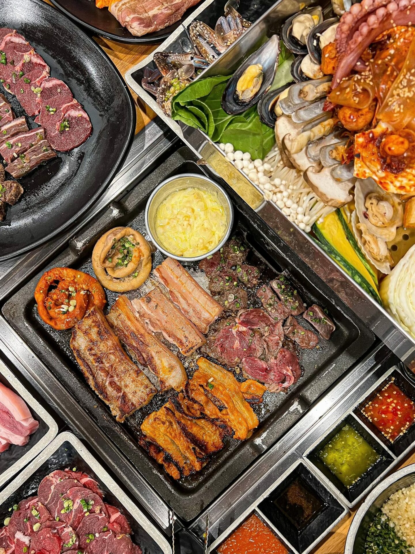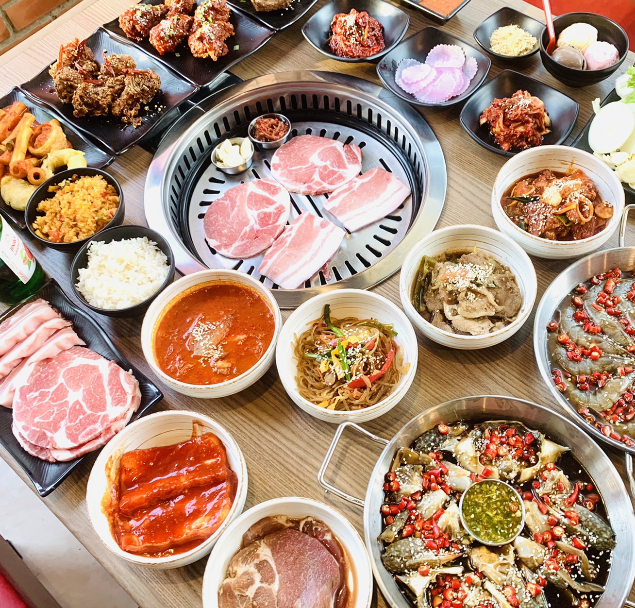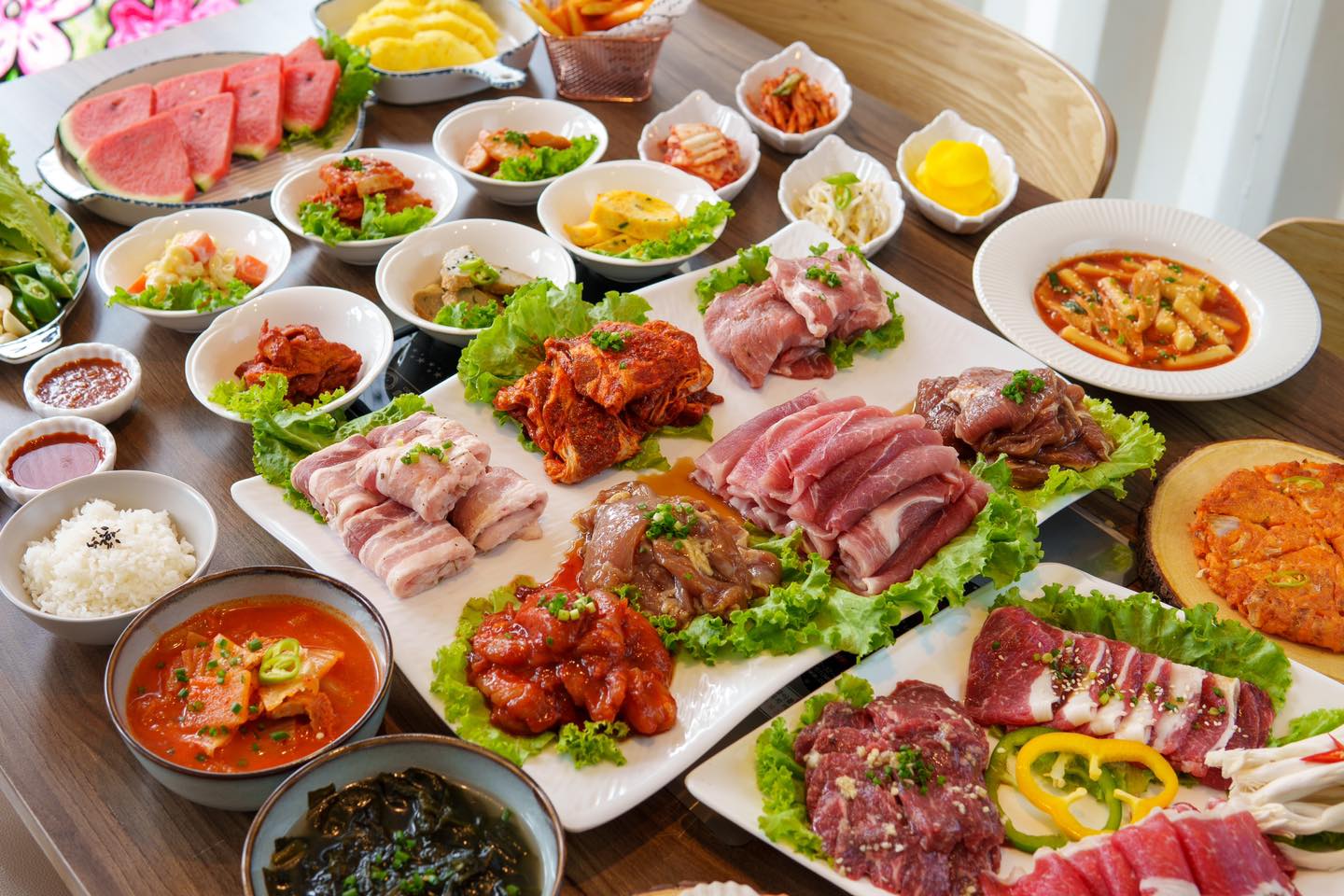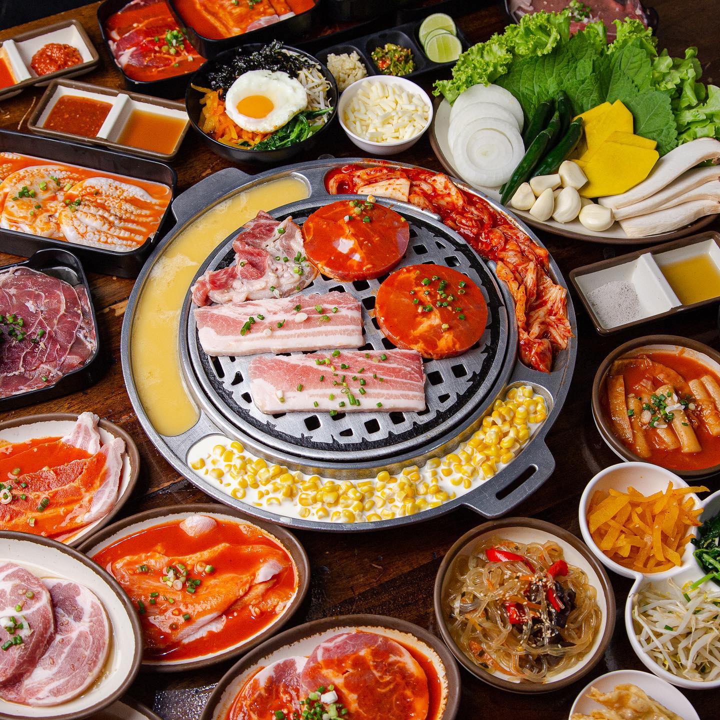 ปิ้งย่างเกาหลี ย่านพระราม 2 วิวดาดฟ้า นั่งทานยาว ๆ ได้ถึงตี 1 ถูกใจสายหิวดึก รวมกุ้งดอง เนื้อวัว หมึกเกาหลี ซีฟู้ดเพียบ เมนูกว่า 100 อย่าง ไม่จำกัดเวลา ตักได้ไม่อั้น รวมเครื่องดื่มและไอติมให้แล้วด้วย อิ่มแบบพุงกาง ในราคารวมทุกอย่างแล้วอยู่ที่ 299 บาทเท่านั้น ร้านตกแต่งสุดเท่สไตล์เกาหลี และยังมีเพลงเปิดคลอให้เข้ากับบรรยากาศร้านอีกด้วย ร้านนี้อยู่ตรงปากซอยพระราม 2 50 ติดโรงพยาบาลสัตว์พระราม 2 ค่ะ