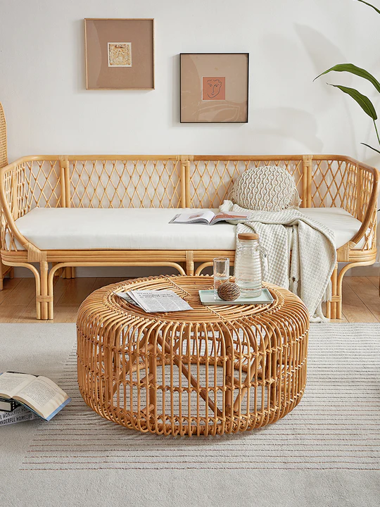 เทรนด์เฟอร์นิเจอร์งานวัสดุทอธรรมชาติ เช่นพวกงานหวายต่าง ๆ ยังคงได้รับความนิยมอย่างต่อเนื่องมาจนถึงปี 2022 ค่ะ มันให้ความรู้สึกถึงการพักผ่อน มองดูผ่อนคลาย สบาย ๆ อีกทั้งยังดูโปร่ง ไม่ทึบ ไม่ช่วยให้ห้องดูแคบเพิ่มขึ้นอีกด้วย โดยงานวัสดุถักทอธรรมชาติ สามารถทำได้ทั้งเตียง, โซฟา, โต๊ะเครื่องแป้ง, โต๊ะกลาง, ตู้, ชั้นวางของ, โคมไฟ และอื่น ๆ ได้อีกมากมายเลยค่ะ
