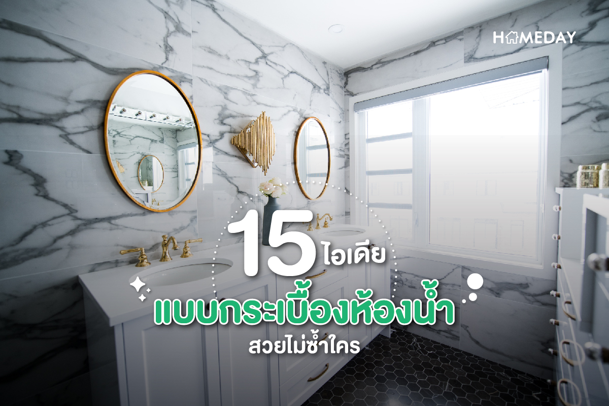 มีใครเบื่อพื้นห้องน้ำแบบเดิม ๆ กันอยู่บ้างคะ กำลังทำบ้านแต่ไม่รู้จะเลือกแบบพื้นห้องน้ำยังไงดี หรือมีใครที่ตอนนี้กระเบื้องห้องน้ำเริ่มเก่าทรุดโทรม กำลังมีแพลนจะเปลี่ยนใหม่ ต้องติดตามบทความนี้กันเลยค่ะ เพราะห้องน้ำ เป็นหนึ่งในห้องที่เราใช้เวลากับมันค่อนข้างนาน สำหรับบางคนก็ถือเป็นพื้นที่ที่ใช้ผ่อนคลาย ทั้งดูหนัง, ฟังเพลง, แช่น้ำ, จุดเทียนหอม, หมักผม, หมักผิว และอื่น ๆ อีกมากมายเลย ห้องน้ำจึงถือเป็นห้องที่เราไม่ควรมองข้าม และควรให้ความสำคัญกับสไตล์และการตกแต่งไม่แพ้กับห้องอื่น ๆ วันนี้ Homeday เลยนำไอเดียการปูกระเบื้องห้องน้ำมาฝากกัน 15 แบบ เผื่อนำไปเป็นแนวทางในการตกแต่งห้องน้ำของตัวเองกันดูนะคะ จะมีแบบไหนบ้างก็ไปดูพร้อม ๆ กันได้เลยค่า
