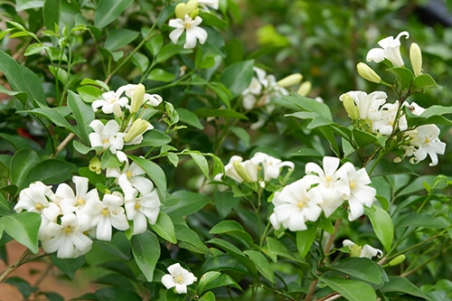 ต้นไม้ทรงพุ่มบังแดด ใบใหญ่สีเขียวหนาแน่น ออกดอกสีขาวละมุนเล็ก ๆ “ต้นพุดกุหลาบ” เป็นไม้ไม่ผลัดใบ ขนาดลำต้นไม่ใหญ่มาก กิ่งก้านอ่อนช้อยสวยงาม จึงเหมาะสำหรับปลูกประดับบ้านและสวนที่มีพื้นที่น้อยค่ะ