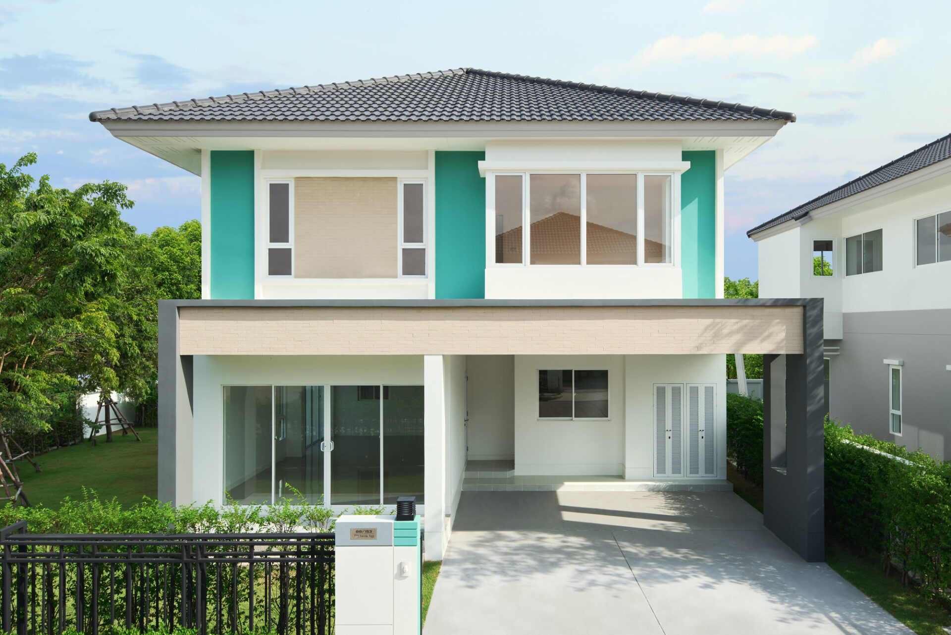 วี บรีธ ชัยพฤกษ์-ไทรน้อย (We Breath Chaiyaphruek-Sainoi) พัฒนาโดยบริษัท บอสโก้ เรียล เอสเตท จำกัด “BREATHE YOUR OWN OZONE” ด้วยแนวคิดที่ต้องการ กลมกลืนไปกับธรรมชาติ โดยคำนึงถึงแสงและลมเป็นองค์ประกอบ บ้าน WE BREATH จึงดีไซน์ เน้นความโปร่งโล่ง สบาย และระบายความร้อนได้ดี ให้คุณสูดอากาศบริสุทธิ์ให้เต็มปอด บนพื้นที่สีเขียวสำหรับทุกการพักผ่อนของทุกคนในครอบครัว พื้นที่โครงการ 17-1-32.9 ไร่ 63 ยูนิต บ้านเดี่ยว ราคาเริ่มต้น 6.59 ล้านบาท