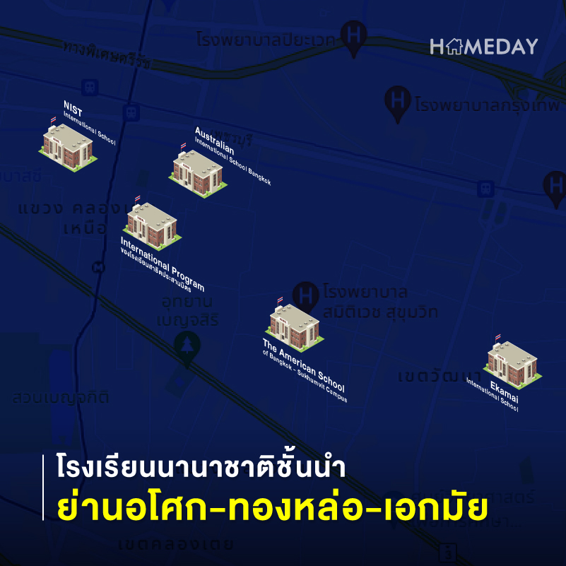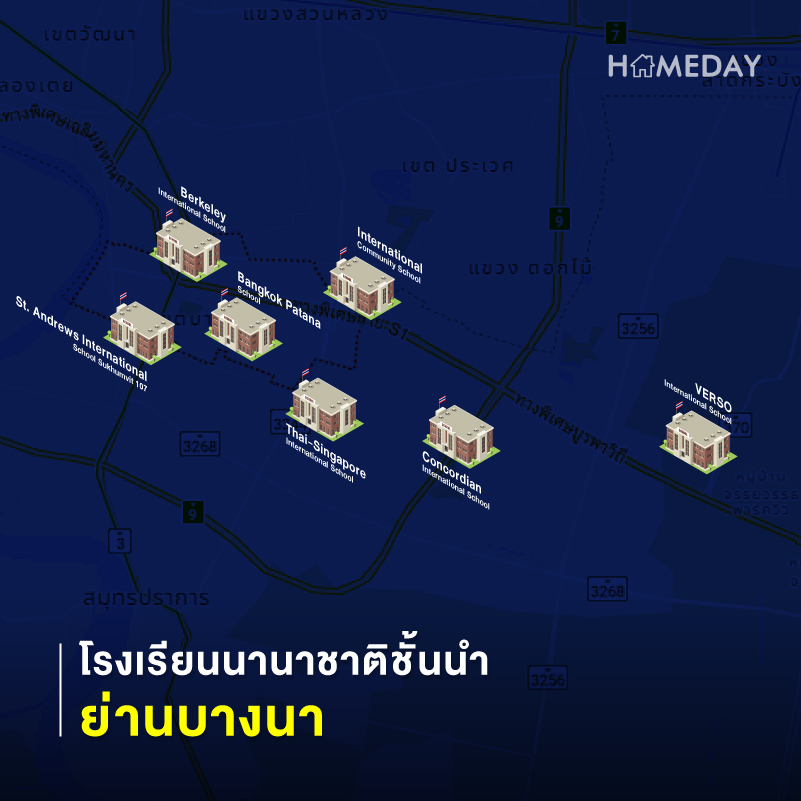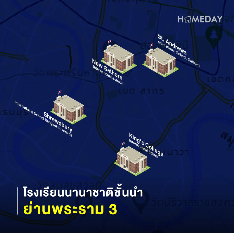 1) King’s College International School : มาตราฐานการศึกษาจาก King’s College School, Wimbledon หนึ่งในโรงเรียนที่ประสบความสําเร็จด้านการศึกษาสูงสุดในโลก มี Facilities ครบครัน ทั้งสระว่ายน้ำในร่มขนาดมาตรฐานโอลิมปิคและสนามกีฬาในร่มขนาด 2,800 ตรม.