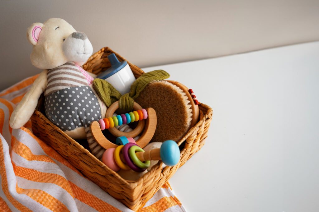 เพื่อส่งเสริมให้เด็กเรียนรู้การจัดเก็บ อาจติดรูปภาพหรือป้ายที่แสดงถึงประเภทของเล่นบนตะกร้า หรือใช้ตะกร้าต่างสีสำหรับของเล่นต่างประเภท วิธีนี้จะช่วยให้เด็กรู้ว่าควรเก็บของเล่นไว้ที่ใด และยังส่งเสริมทักษะการจัดหมวดหมู่อีกด้วย