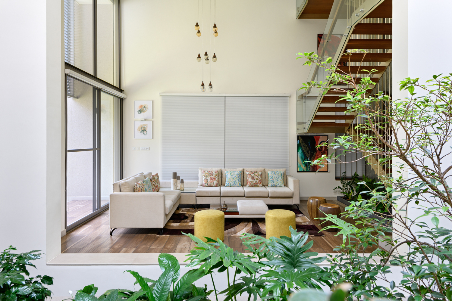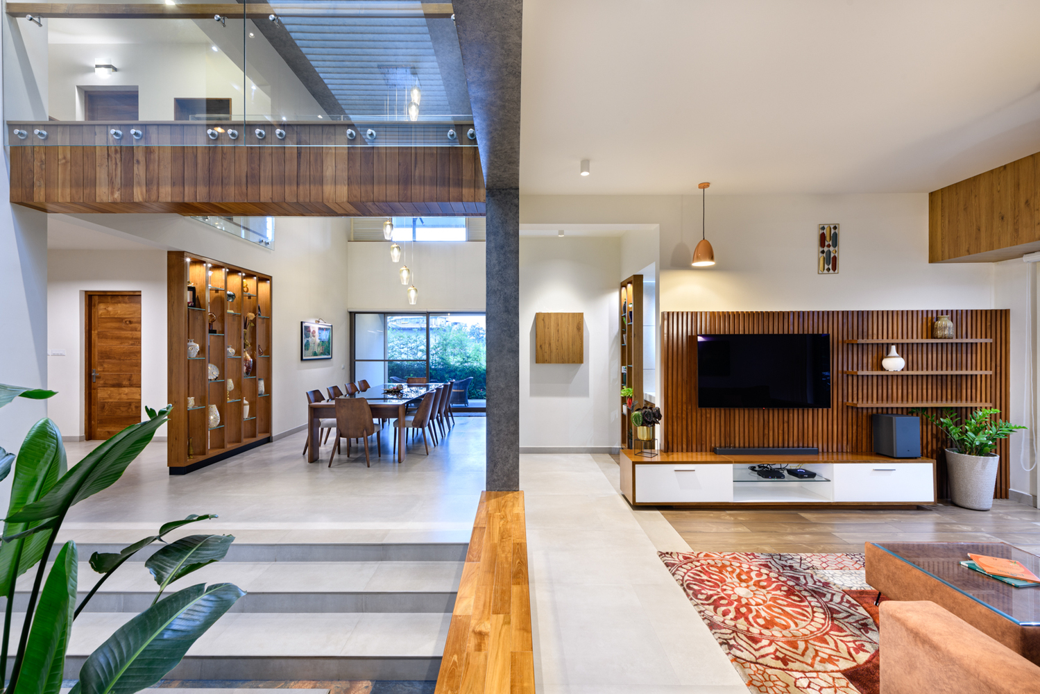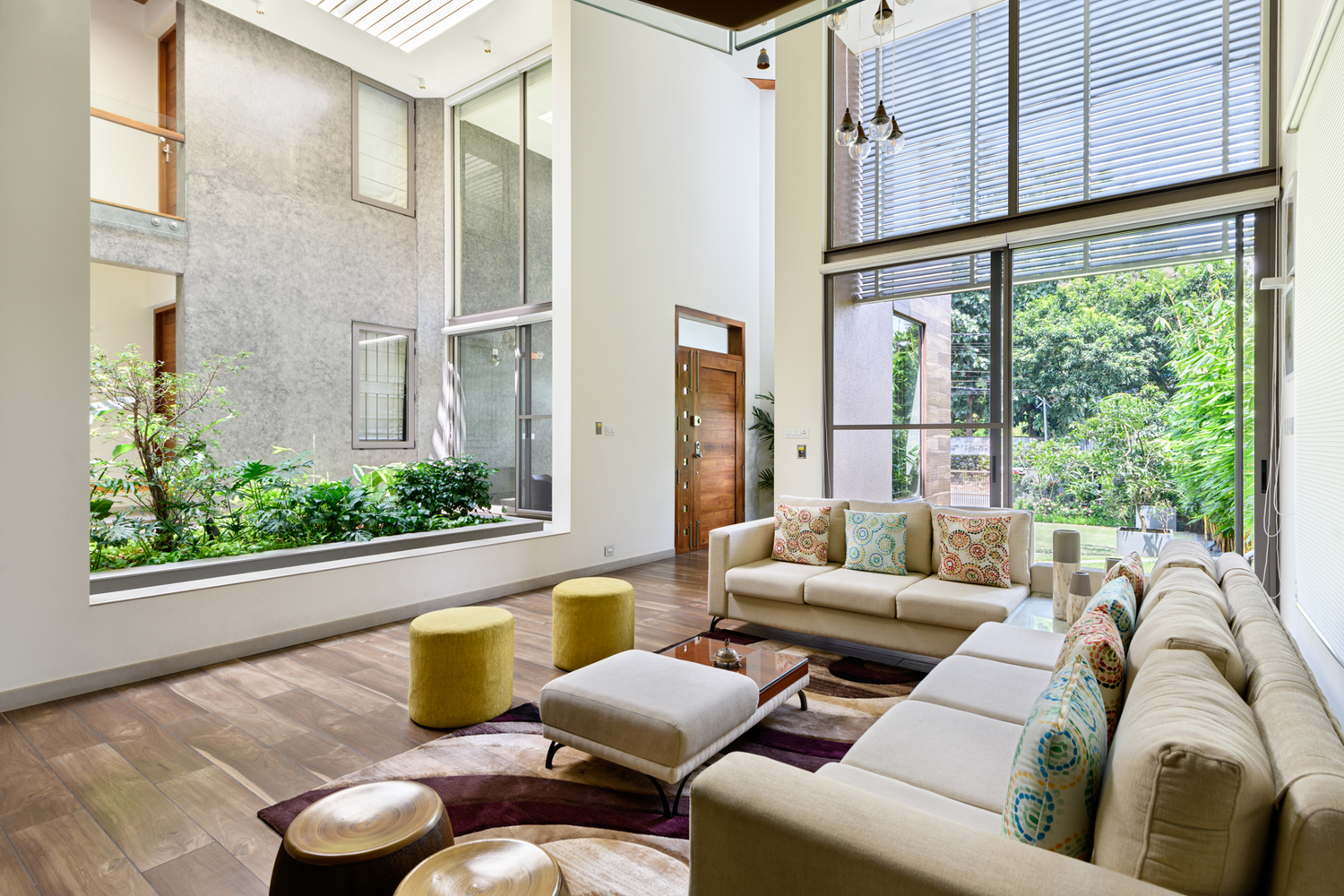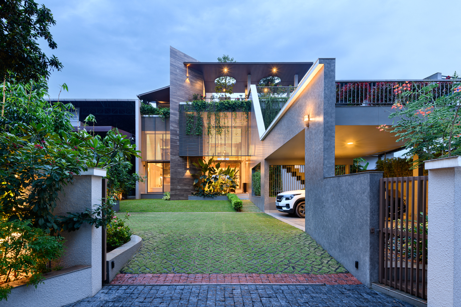 ในสมัยที่บ้านต้องการความหลากหลายในการใช้งานแบบ Full Function เจ้าของบ้านเฟ้นหาดีไซน์บ้านที่ช่วยลดทอนข้อจำกัดต่างๆ และเพิ่มในสิ่งที่ต้องการได้มากขึ้น ซึ่งตัวบ้านก็ได้ผสานภูมิทัศน์เข้ากับสถาปัตยกรรมที่ชวนสะดุดตา ตั้งแต่โรงจอดรถไปจนถึงภายในของบ้าน สำหรับห้องรับแขกที่มีความโอ่โถงแบบ Double volume ที่จะช่วยสร้างความโปร่งสบาย รับอากาศบริสุทธิ์จากต้นไม้นานาชนิดได้อย่างเต็มที่ แถมยังสามารถรับแสงธรรมชาติได้ตลอดวันอีกด้วย