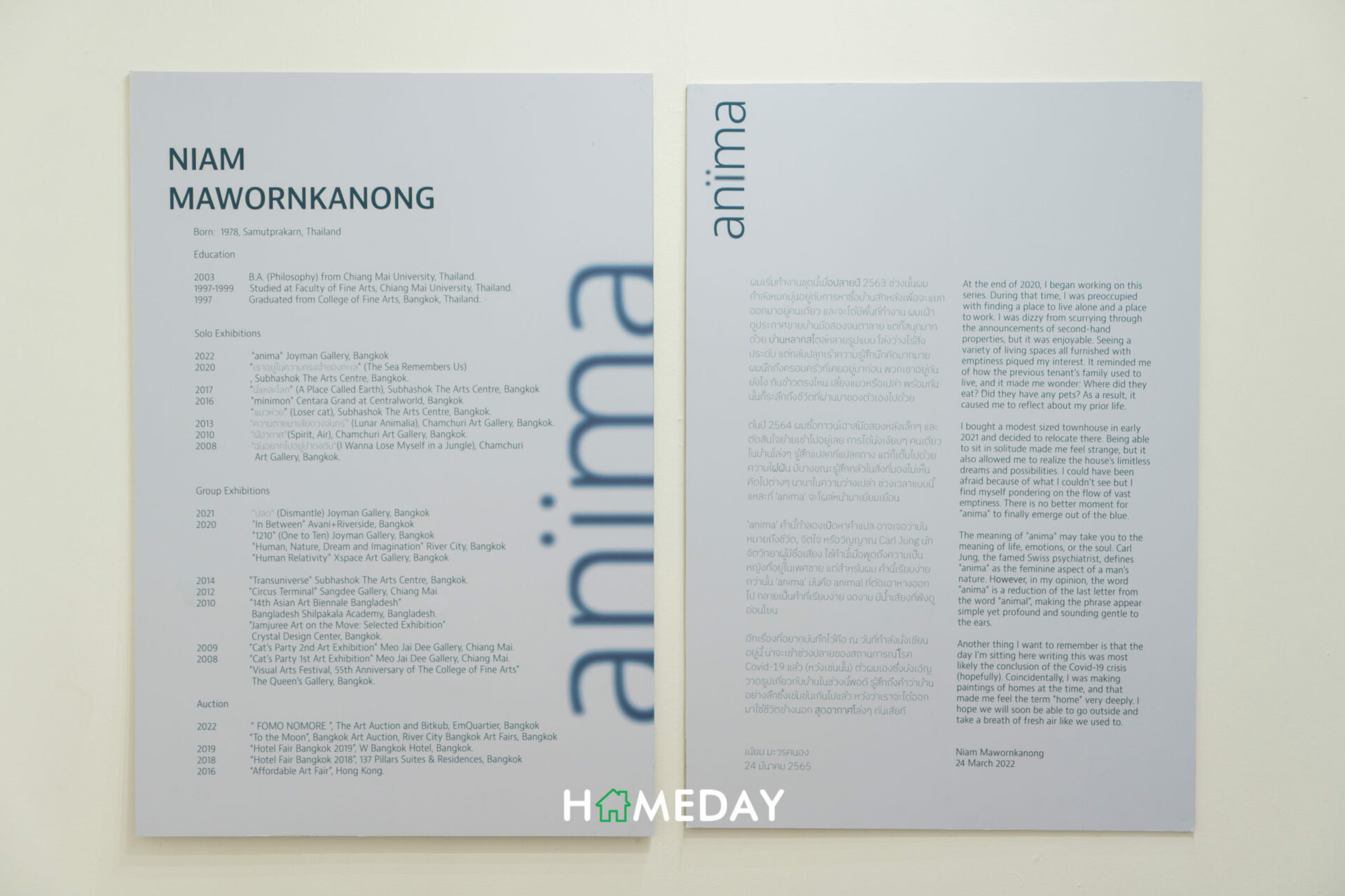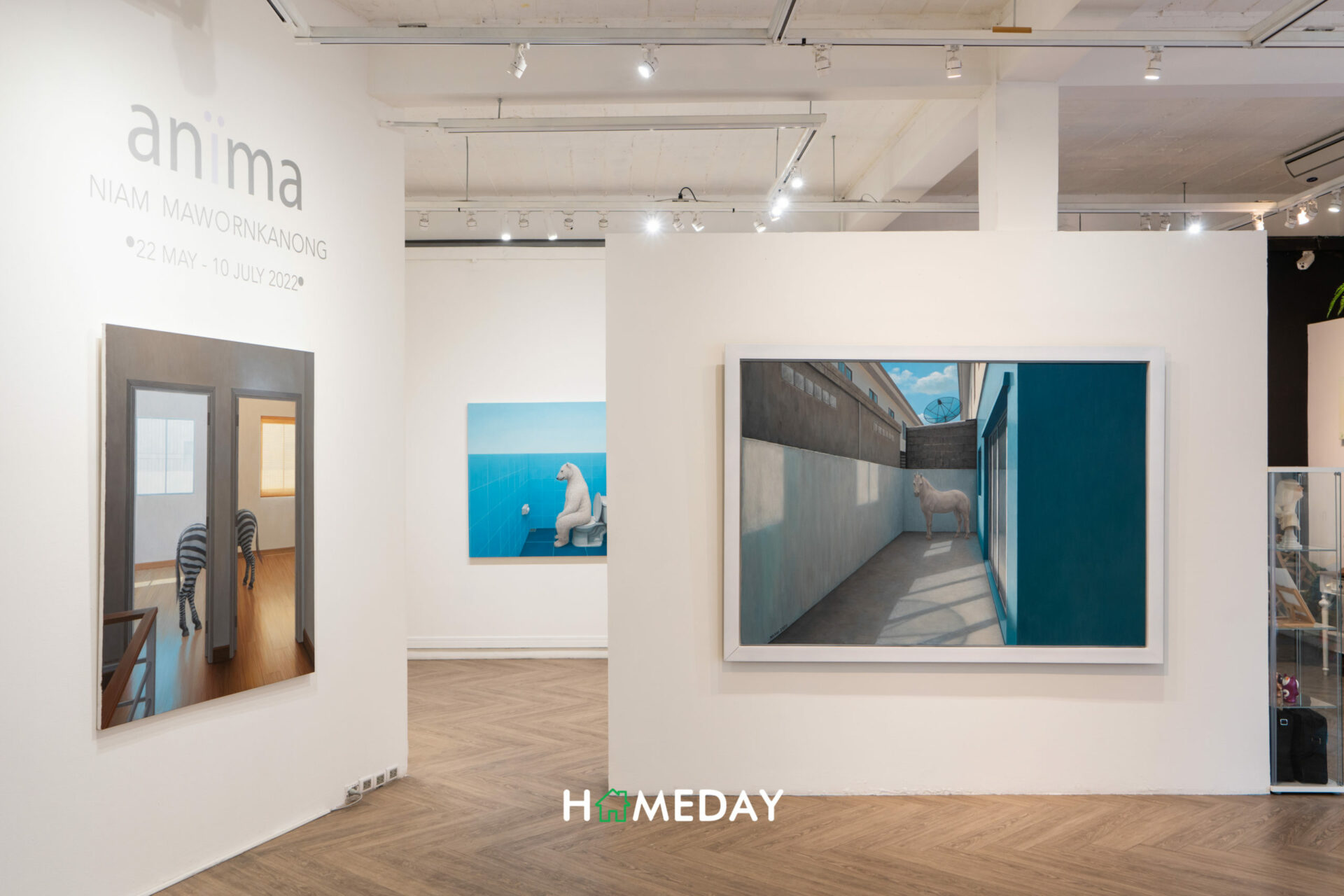 ภายในนิทรรศการ เราจะได้พบการเล่าเรื่องราวของคุณเนียม ในบ้านหลังใหม่ของเขา ผ่านภาพเหล่า anima หรือเหล่าสัตว์ต่าง ๆ ที่อยู่ตามส่วนต่าง ๆ ของตัวบ้าน ด้วยอิริยาบถท่าทางที่แตกต่างกันไป ต้องบอกว่างานนี้แฝงทั้งความน่ารัก เรียบง่าย เป็นธรรมชาติ เข้าถึงได้ รับรองว่าทุกคนจะต้องหลงรักเหล่า anima ที่ปรากฏขึ้นกลางความรู้สึกของคุณเนียมกันอย่างแน่นอนเลยค่ะ