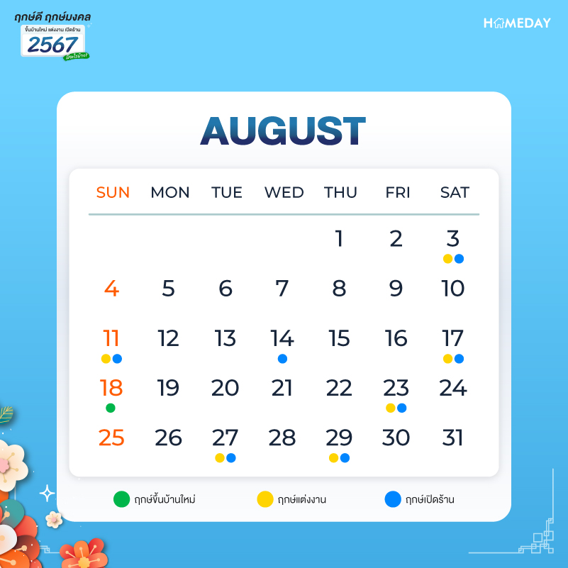 ฤกษ์ดี ฤกษ์มงคล ขึ้นบ้านใหม่ แต่งงาน เปิดร้าน ปี 2567 มีอะไรบ้าง? - Homeday Space | HOMEDAY