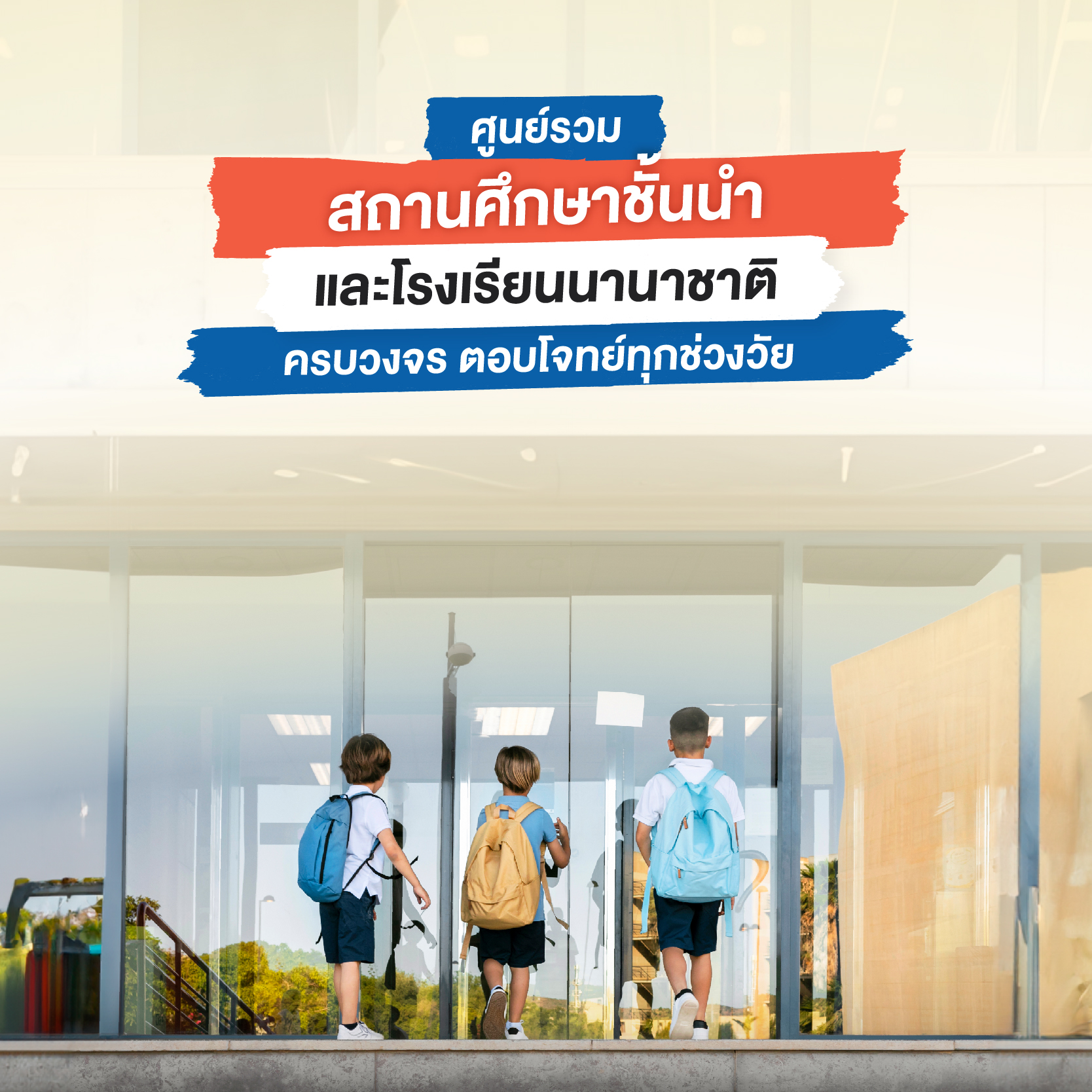 อย่างที่เกริ่นไปในตอนต้น ว่าย่าน ‘บางนา’ เป็นแหล่งรวมโรงเรียนนานาชาติชั้นนำมากมาย ตอบโจทย์รองรับหลักสูตรนานาชาติทุกรูปแบบ ทุกประเทศ มีตั้งแต่ชั้นอนุบาลจนถึงมัธยมศึกษา ครบทุกช่วงวัย สามารถเลือกตามความต้องการของผู้ปกครองและนักเรียนได้เลย นับรวมกันแล้วได้ตัวเลือกโรงเรียนนานาชาติมากกว่า 16 แห่งเลยทีเดียว โดยจะกระจายตัวอยู่ทั่วทำเล โซนแรกอย่างถนนบางนา-ตราด ได้แก่ International Community School, Berkeley International School, Concordian International School, Montessori Academy Bangkok International School, Verso International School, Raffles American School Bangkok, The American School of Bangkok: Green Valley Campus และ Didyasarin International Preparatory School Bangkok ถนนศรีนครินทร์ ได้แก่ Wells International School และ Thai-Singapore International School ถนนสุขุมวิท ได้แก่ St. Andrews International School และ Maple Bear International Preschool ถนนลาซาล ได้แก่ Bangkok Patana School ถนนหนามแดง-บางพลี ได้แก่ Singapore International School Suvarnabhumi ถนนประเสริฐศิลป์ ได้แก่ Thai-Chinese International School ถนนทางรถไฟเก่า ได้แก่ Thai Sikh International School เป็นต้น นอกจากนี้ก็ยังมีสถานศึกษาชั้นนำอื่น ๆ อย่าง โรงเรียนสารสาสน์วิเทศสุวรรณภูมิ, โรงเรียนเซนต์โยเซฟบางนา, โรงเรียนเตรียมอุดมศึกษาน้อมเกล้า, มหาวิทยาลัยพระจอมเกล้าลาดกระบัง เป็นตัวเลือกเพิ่มเติมอีกด้วย