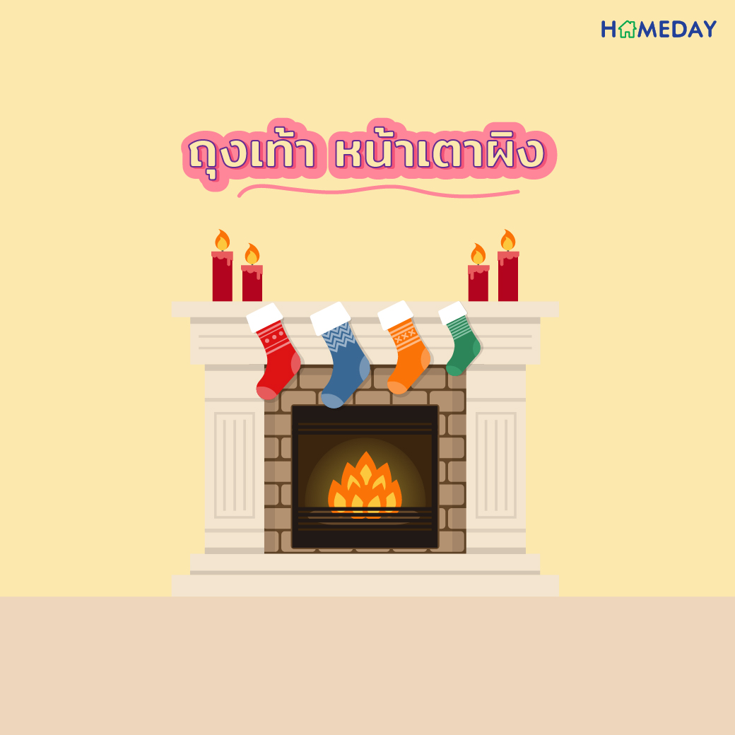 ห้อยถุงเท้า หน้าเตาผิงมาจากความเชื่อที่ว่า ซานต้าครอสจะนำของขวัญที่อยากได้มาใส่ไว้ในถุงเท้าเหล่านี้นั่นเอง ซึ่งในความจริงแล้วเพื่อนๆ รู้มั้ยคะ ว่าเกิดขึ้นจากประเพณีเก่าแก่อย่างหนึ่งนั่นคือ การวางหญ้าแห้งไว้ในรองเท้าในคืนวันที่ 5 ธันวาคม เพราะเชื่อว่า หากนักบุญนิโคลัสผ่านมา หญ้าแห้งที่พวกเขาทิ้งไว้ก็จะกลายเป็นอาหารของลาที่ท่านใช้ในการสัญจร และนักบุญนิโคลัสก็จะทิ้งเหรียญเงินเอาไว้ให้ในรองเท้าเป็นการตอบแทนค่ะ