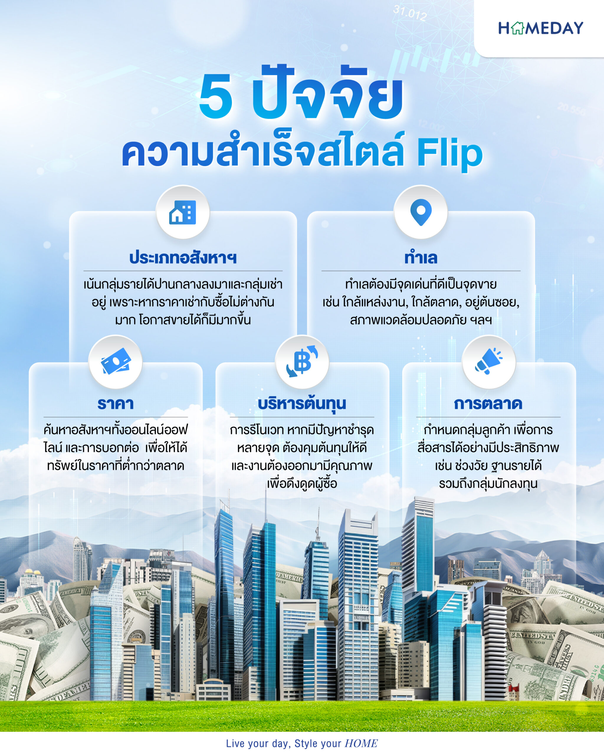 หมายเหตุ ข้อจำกัดความรับผิดชอบ : บทความนี้จัดทำขึ้นเพื่อให้ข้อมูลทั่วไปสำหรับเว็บไซต์ Homeday โดย บริษัท โฮมเดย์ กรุ๊ป จำกัด เท่านั้น บริษัทไม่สามารถให้คำมั่นหรือคำรับประกันเกี่ยวกับเนื้อหา รวมถึงไม่สามารถรับรองความเหมาะสมต่อวัตถุประสงค์เฉพาะใดๆ ตามขอบเขตของกฎหมาย เราจะพยายามอย่างเต็มความสามารถเพื่อตรวจสอบว่าข้อมูลที่ปรากฏในบทความนี้ถูกต้อง เชื่อถือได้ และครบถ้วนสมบูรณ์ ณ เวลาที่จัดทำ ข้อมูลดังกล่าวไม่ควรนำไปใช้ในการพิจารณาตัดสินใจด้านการเงิน การลงทุนในอสังหาริมทรัพย์ หรือประเด็นกฎหมายโดยทันที ผู้อ่านไม่ควรอาศัยข้อมูลในบทความนี้แทนคำแนะนำจากผู้ชำนาญการที่ได้รับการฝึกฝนซึ่งสามารถวิเคราะห์ข้อเท็จจริงและสภาวะเฉพาะของท่านได้ ทั้งนี้ ทางบริษัทจะไม่รับผิดชอบใดๆ หากท่านเลือกที่จะนำข้อมูลไปประกอบการตัดสินใจของท่าน
