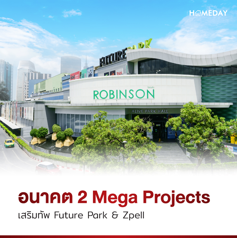 แน่นอนว่าถ้าพูดถึงทำเล ‘ฟิวเจอร์-รังสิต’ ศูนย์การค้าอย่าง Future Park & Zpell ก็ต้องเป็นหนึ่งในพระเอกของย่านอย่างแน่นอน ด้วยขนาดที่ครองอันดับ 1 ในประเทศไทย ทำให้ที่นี่เป็นแหล่งรวมของทุกไลฟ์สไตล์ จัดจำหน่ายสินค้าและให้บริการครบทุกประเภท ที่สุดของการพักผ่อนของทุกคนในย่าน ที่ยังคอยปรับปรุง พัฒนา ตามเทรนด์ของโลกอย่างไม่หยุดนิ่ง นอกจากนี้ อนาคตอันใกล้ เตรียมพบกับ 2 Mega Projects อย่าง