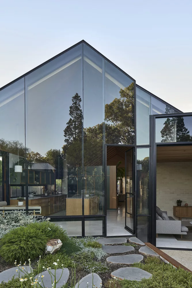 บ้านเรือนกระจกหลังนี้ อยู่ที่ประเทศ Australia เป็นผลงานออกแบบของ Ashley Halliday ออกแบบสไตล์นอร์ดิก-โมเดิร์น หลังคาแบบทรง A-frame บ่งบอกความเป็นนอร์ดิกได้ชัดเจน ตัวบ้านมีลักษณะเป็นบ้านชั้นเดียว ดีไซน์ของบ้านจะมีความเรียบง่าย ในส่วนของเรือนกระจกจะอยู่โซนหลังบ้าน เพื่อรับแสงสว่างในตอนกลางวันได้อย่างเต็มที่ มีการเลือกใช้ขอบสีดำมาตัดกับความใสของกระจกได้อย่างลงตัว ทำให้ได้บ้านที่มีเอกลักษณ์เฉพาะตัวหลังนี้ขึ้นมา