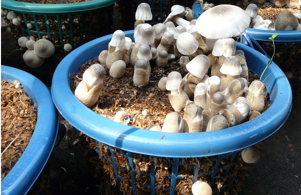 5. ดูแลรักษาความชื้นเห็ด การดูแลเห็ดก้อนให้ออกดอกสวยงามสมบูรณ์ ต้องรักษาความชื้น ควรหมั่นฉีดน้ำ เมื่อก้อนเชื้อเห็ดได้รับความชื้นสม่ำเสมอ จะทำให้ดอกเห็ดออกเรื่อย ๆ หรืออาจใช้ผ้