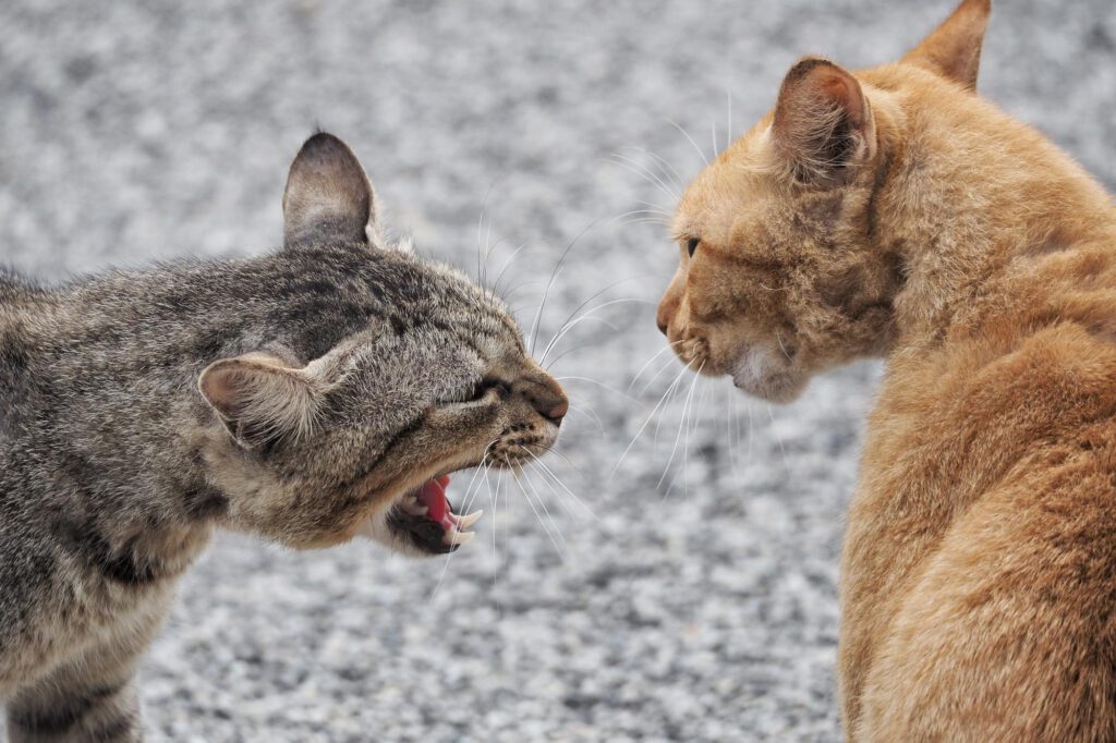 แต่ละแมวจะมีพื้นที่ส่วนตัวที่ต้องการความเป็นส่วนสัดสูง การปรากฏตัวของแมวแปลกหน้าจะถูกรับรู้ว่าเป็นภัยคุกคามโดยทันที ซึ่งอาจนำไปสู่ปฏิกิริยาทางอารมณ์ที่รุนแรง
