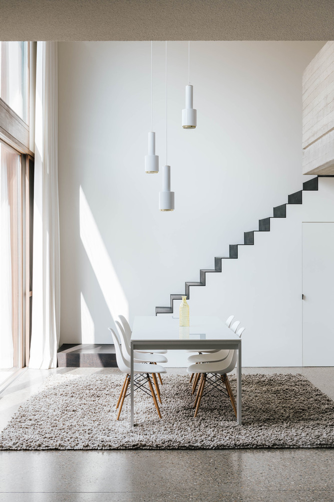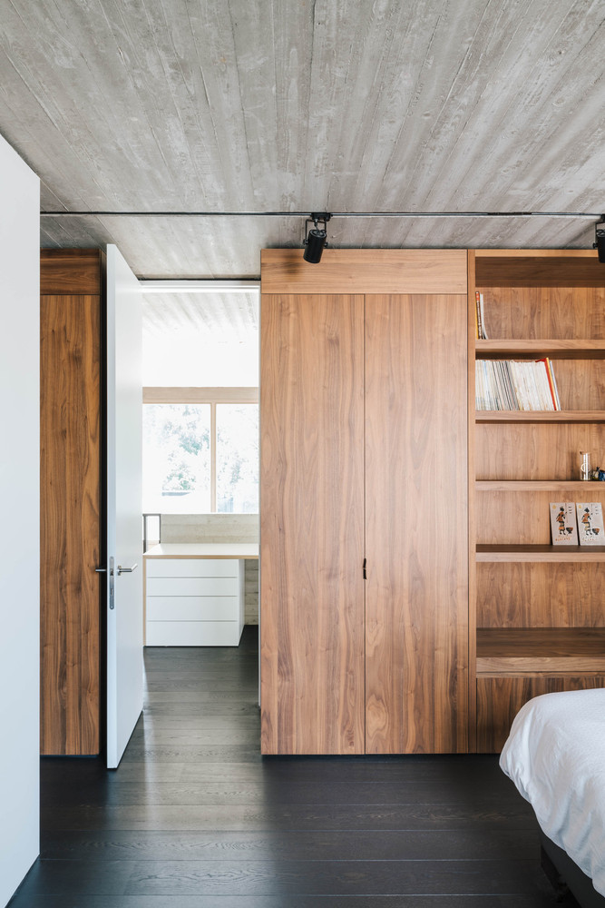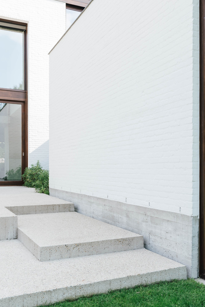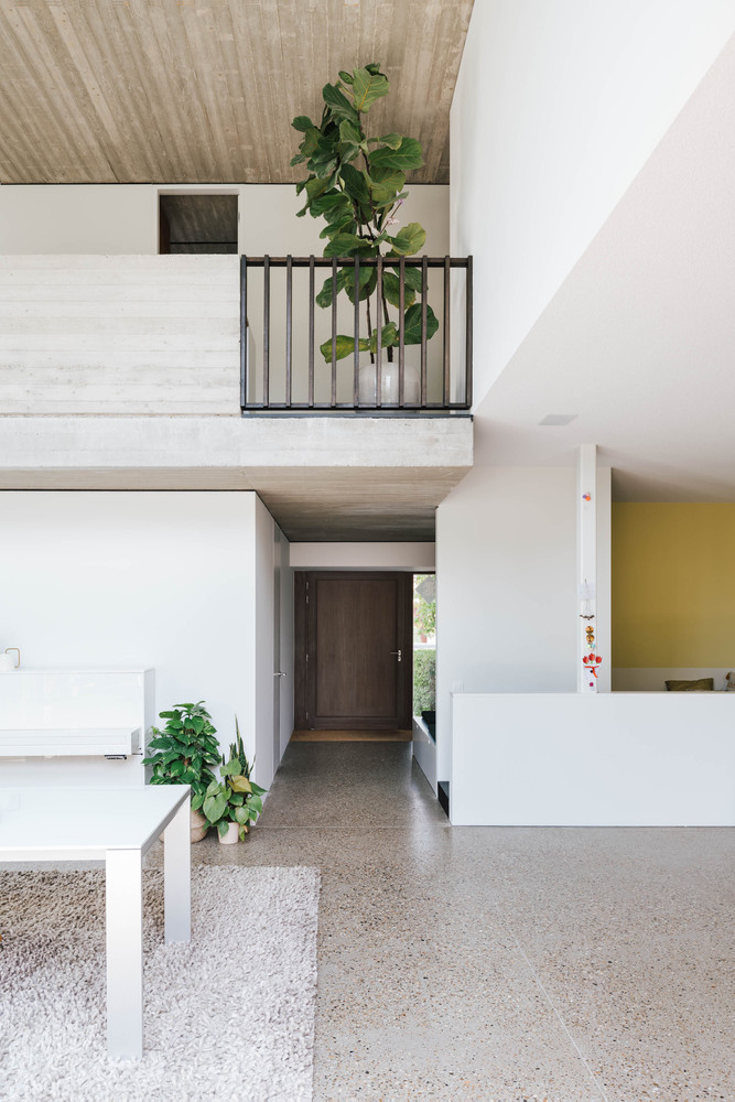 ตัวบ้านถูกแบ่งเป็นสองหลัง โดยหลังเล็กจะอยู่ในสวนหลังบ้านที่สามารถใช้งานได้หลากหลายตามความต้องการ ส่วนหลังใหญ่ด้านหน้าใช้อยู่อาศัยเป็นหลัก เน้นเป็นโทนสีสว่างๆ ติดตั้งกระจกใสบานสูงใหญ่รอบบ้าน ช่วยให้บ้านดูโล่งโปร่งสบาย สามารถสัมผัสได้ถึงวิวสวน และสระว่ายน้ำได้อย่างเต็มที่ แม้ว่าภายในบ้านจะตกแต่งแบบเรียบง่าย แต่ก็ยังไม่ลืมที่จะนำต้นไม้ใบเขียววางตกแต่งตามจุดต่างๆ ซึ่งเป็นการแต่งเติมเพิ่มสีสันได้อย่างลงตัว แถมต้นไม้ยังทำหน้าที่ช่วยฟอกอากาศให้สดชื่นได้ตลอดวันอีกด้วย ถัดมาที่สวนหลังบ้านจะมีเฉลียงพร้อมเก้าอี้สองสามตัววางประดับอยู่ริมสระน้ำ สามารถออกมาสูดอากาศอันริสุทธิ์ในพื้นที่ส่วนตัวได้อย่างสบายใจ