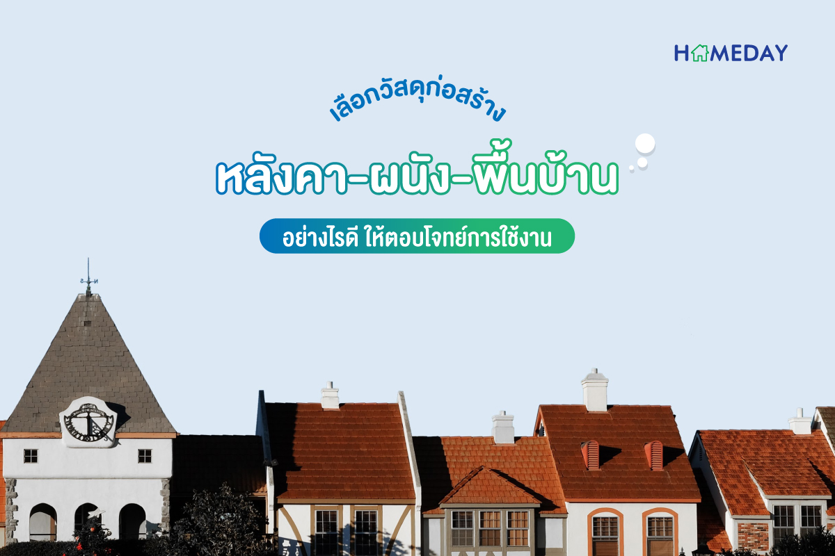 กำลังลังเลกับการเลือกวัสดุสร้างบ้านกันอยู่ใช่ไหม วันนี้ Homeday จะพามารู้จักพร้อมกับการเลือกวัสดุก่อสร้างหลังคา ผนัง และพื้นบ้านให้ตอบโจทย์การใช้งานของแต่ละบ้านกันค่ะ ทั้งหลังคา ผนัง และพื้นบ้านนั้นถือเป็นจุดสำคัญและต้องเลือกให้ดี แข็งแรง เพราะเมื่อติดตั้งหรือสร้างไปแล้วเปลี่ยนใจยากแล้วนะคะ ไหนจะค่าใช้จ่ายที่เสียไปและเวลาที่เสียไป ดังนั้นเราจึงจำเป็นต้องรู้จักวัสดุแต่ละชนิดและเลือกใช้ให้เหมาสม คุ้มค่ากับเงินที่จ่ายไปค่ะ