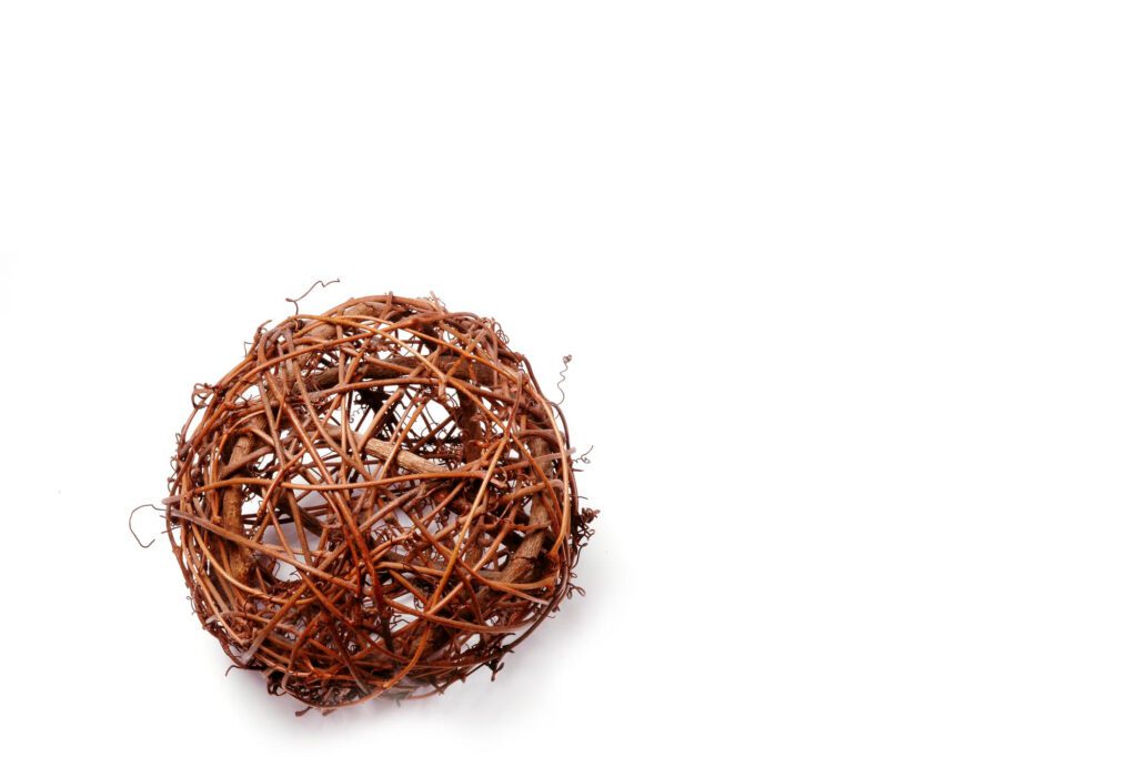 ลูกบอลกิ่งไม้เป็นของเล่นที่น่าสนใจสำหรับสุนัขที่ชอบเคี้ยวและคาบของ ทำจากกิ่งไม้เล็กๆ หลายๆ กิ่งมารวมกันเป็นทรงกลม