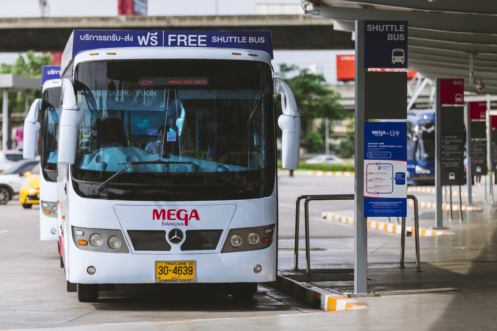1. บริการรถชัทเทิลบัส ฟรี ของศูนย์การค้าเมกาบางนา โดยเส้นทางการให้บริการของ Shuttle Bus เริ่มจากเมกาบางนา ถึง สถานีรถไฟฟ้า BTS อุดมสุข ทางออกที่ 5 พร้อมให้บริการทุกวัน ตั้งแต่เวลา 08.00-23.30 น. โดยรถจะไม่จอดรับ-ส่งนอกเส้นทางข้างต้น และไม่จอดรับผู้โดยสารที่บริเวณหน้าปั๊มเชลล์หรือหน้าศูนย์ฮอนด้า