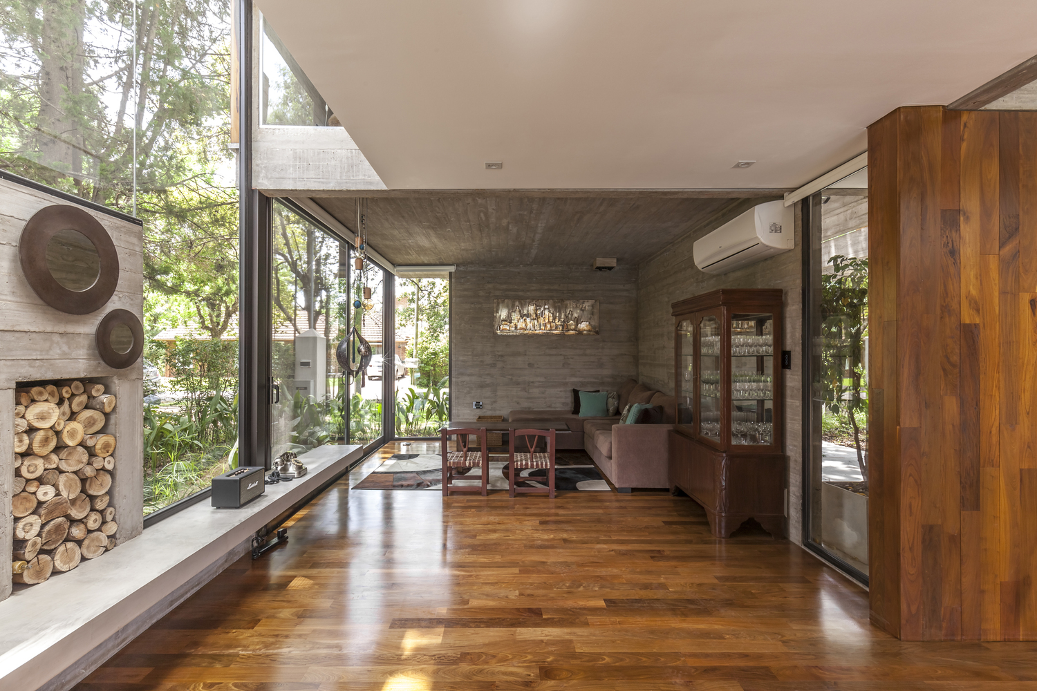 ไอเดียแต่งบ้านหลังนี้เป็นผลงานของ Besonias Almeida Arquitectos ตั้งอยู่ที่ประเทศบราซิล โดยเจ้าของบ้านมีความต้องการใช้คอนกรีตเป็นหลักเสริมด้วยงานไม้ เพื่อลดทอนความแข็งกระด้างให้ดูเบาบางลง รวมทั้งปลูกต้นไม้ เพิ่มความเขียวขจีรอบๆ บ้าน จัดว่าเป็นการผสมผสานกันอย่างสวยงาม และลงตัว