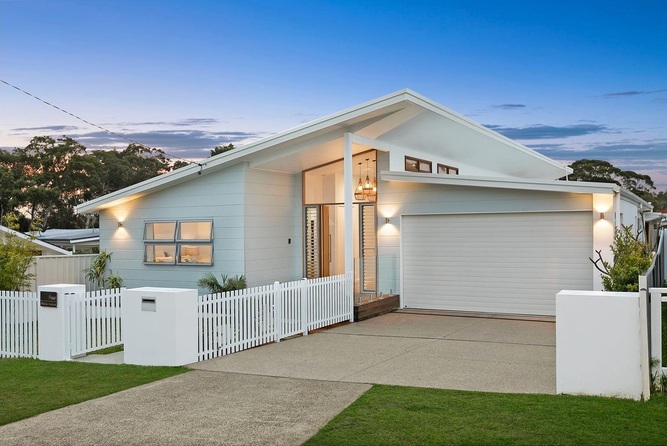 บ้านเดี่ยวสไตล์โมเดิร์น-มินิมอล มีการตกแต่งที่สวยงามด้วยโทนสีขาว ทำหลังคาบ้านเป็นทรงสโลปให้ดูทันสมัยมากขึ้น รั้วบ้านกับโรงจอดรถจะออกแบบให้มีความมินิมอล เข้ากับตัวบ้านเป็นอย่างดี แม้มองภายนอกบ้านอาจจะดูเล็กกะทัดรัด แต่หารู้ไม่ว่าภายในบ้านได้ตกแต่งแบ่งโซนเอาไว้เป็นสัดเป็นส่วนอย่างพอเหมาะ