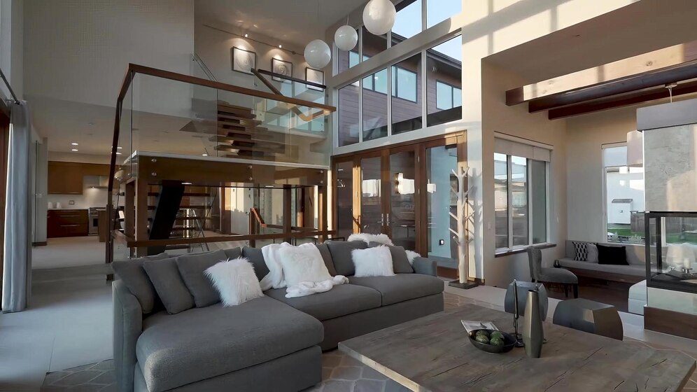การตกแต่งภายในบ้านสไตล์โมเดิร์นเน้นความเรียบง่าย สีขาว เทา ดำ เป็นหลัก เฟอร์นิเจอร์มีรูปทรงเรียบๆ ไม่มีลวดลายซับซ้อน วัสดุที่ใช้มักเป็นโลหะ กระจก และวัสดุสังเคราะห์ พื้นที่ภายในบ้านถูกออกแบบให้กว้างขวาง และมีแสงธรรมชาติเข้าถึงได้มาก
