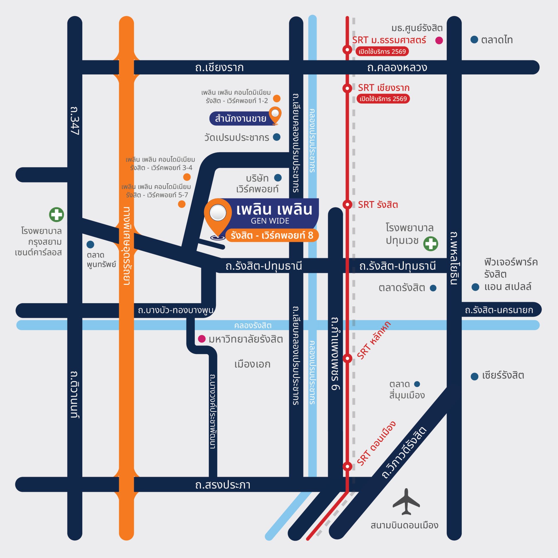 การเดินทาง ทางพิเศษศรีรัชแอร์พอร์ตลิงค์ สถานีมักกะสันรถไฟฟ้า MRT สถานีห้วยขวาง สถานศึกษารร.เตรียมอุดมฯ รัชดา ม.หอการค้าไทย รร.บางกอกทวิวิทย์ รร.นานาชาติ KIS รร.นานาชาติ The Regent’s รร.สมาคมไทย-ญี่ปุ่น