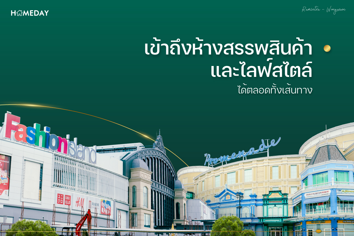 เข้าถึงห้างสรรพสินค้าและไลฟ์สไตล์ได้ตลอดทั้งเส้นทาง เรื่องชอปปิง กิน เที่ยว ก็ตอบโจทย์ทุกไลฟ์สไตล์ได้ครบแน่นอนครับ เพราะย่าน “รามอินทรา-วงแหวน” ถือเป็นหนึ่งในทำเลที่มีห้างสรรพสินค้าชื่อดังกระจายตัวอยู่รอบ ๆ พื้นที่ ที่ทุกคนสามารถเข้าถึงได้ในทุก ๆ วัน