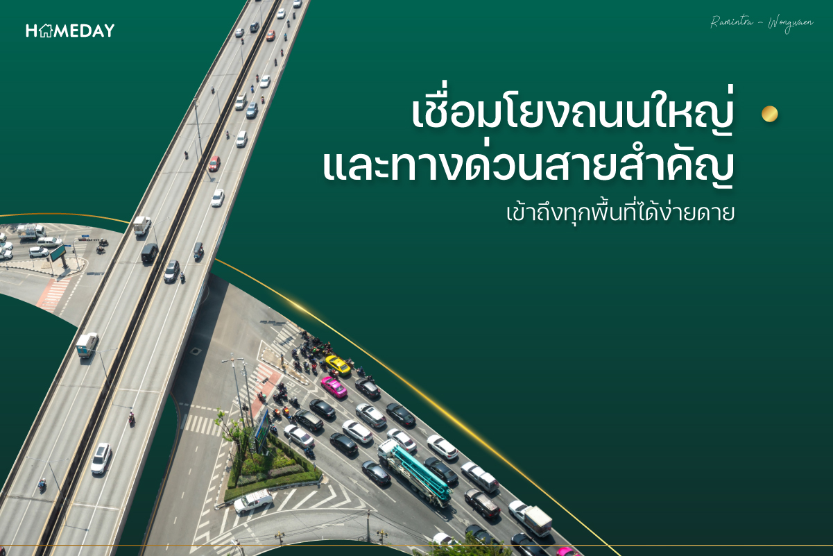 เชื่อมโยงถนนใหญ่และทางด่วนสายสำคัญ เข้าถึงทุกพื้นที่ได้ง่ายดาย สำหรับใครที่ใช้รถยนต์ส่วนตัวในการเดินทางอยู่เป็นประจำ ที่นี่คือทำเลที่ตอบโจทย์ไลฟ์สไตล์ในข้อนี้ได้มากที่สุดแห่งหนึ่งเลยก็ว่าได้ครับ เพราะทำเล “รามอินทรา-วงแหวน” เชื่อมโยงกับถนนใหญ่สายสำคัญด้วยกันถึง 3 สาย ได้แก่