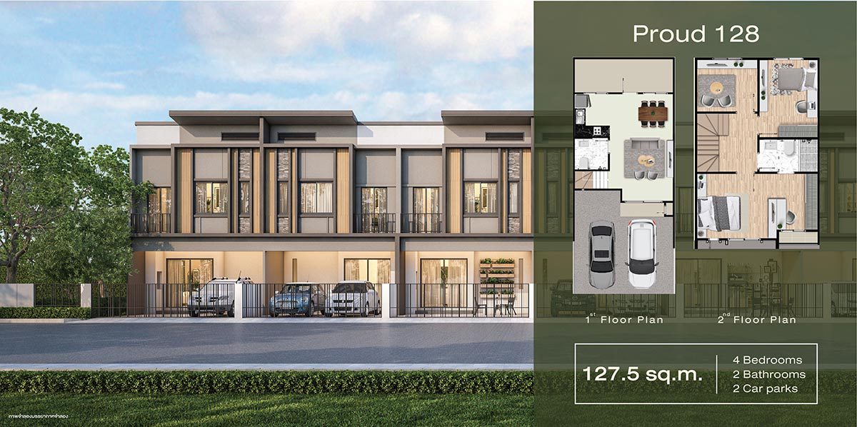 แบบบ้าน : WAYFARING หน้ากว้าง 5.7 x 13.0 ม. พื้นที่ใช้สอย 115.9 ตร.ม. ขนาดที่ดินมาตรฐาน 18.50 ตร.ว.ห้องนอน 3 ห้อง ห้องอเนกประสงค์ 1 ห้อง ห้องน้ำ 2 ห้อง ที่จอดรถ 2 คัน