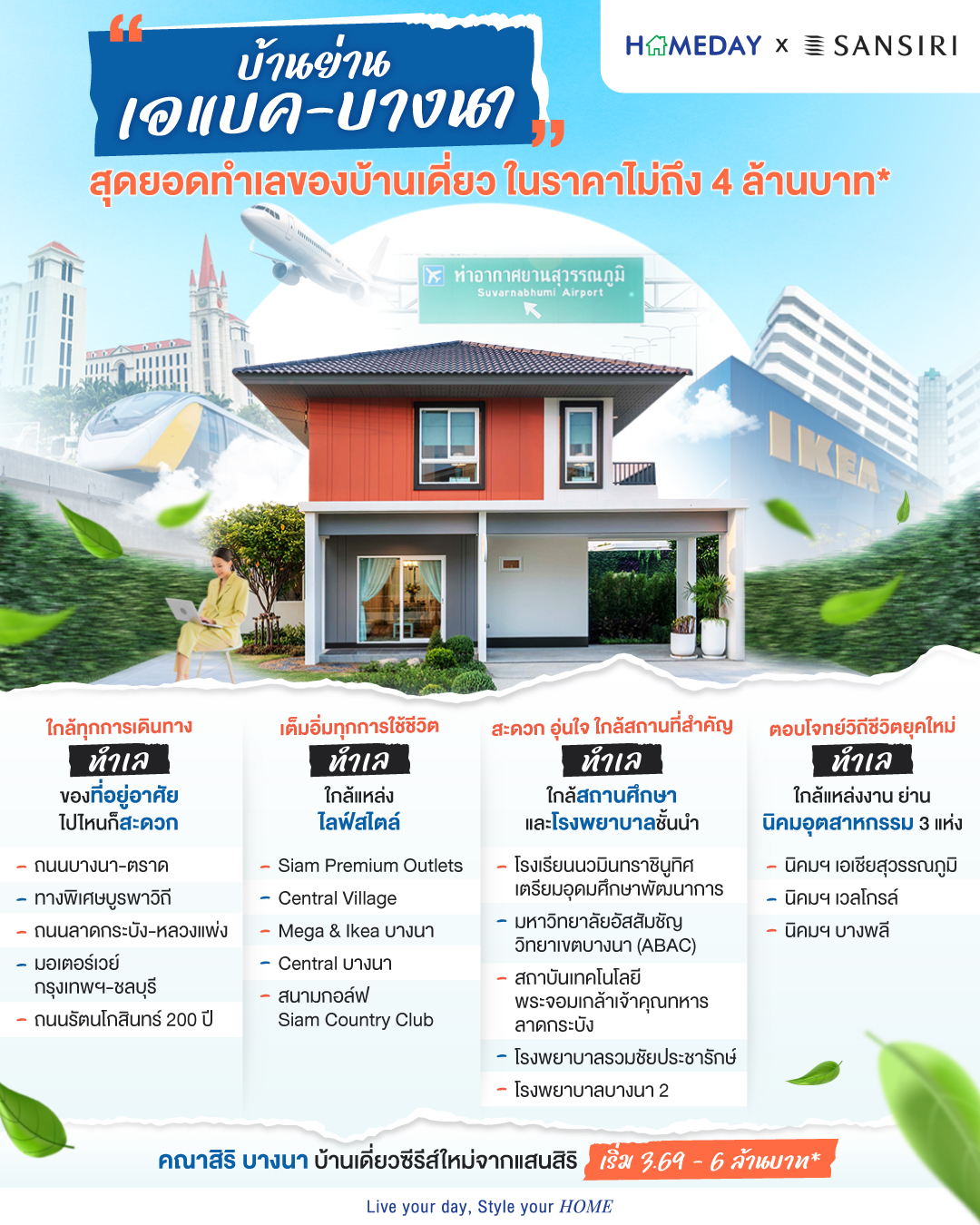 #Homeday #Sansiri #แสนสิริ #KanasiriBangna #YouAreMadeForLife #คณาสิริบางนา #บ้านพร้อมอยู่ #บ้านเดี่ยวบางนาเอแบค #ทำเลเอแบคบางนา #เอแบคบางนา