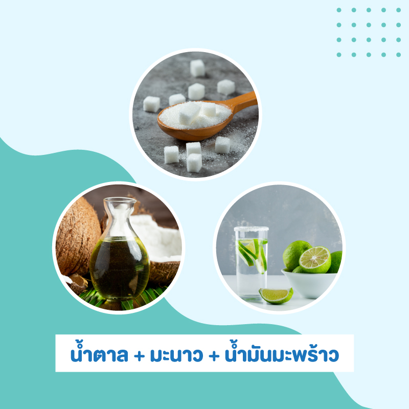 น้ำตาล + มะนาว + น้ำมันมะพร้าว