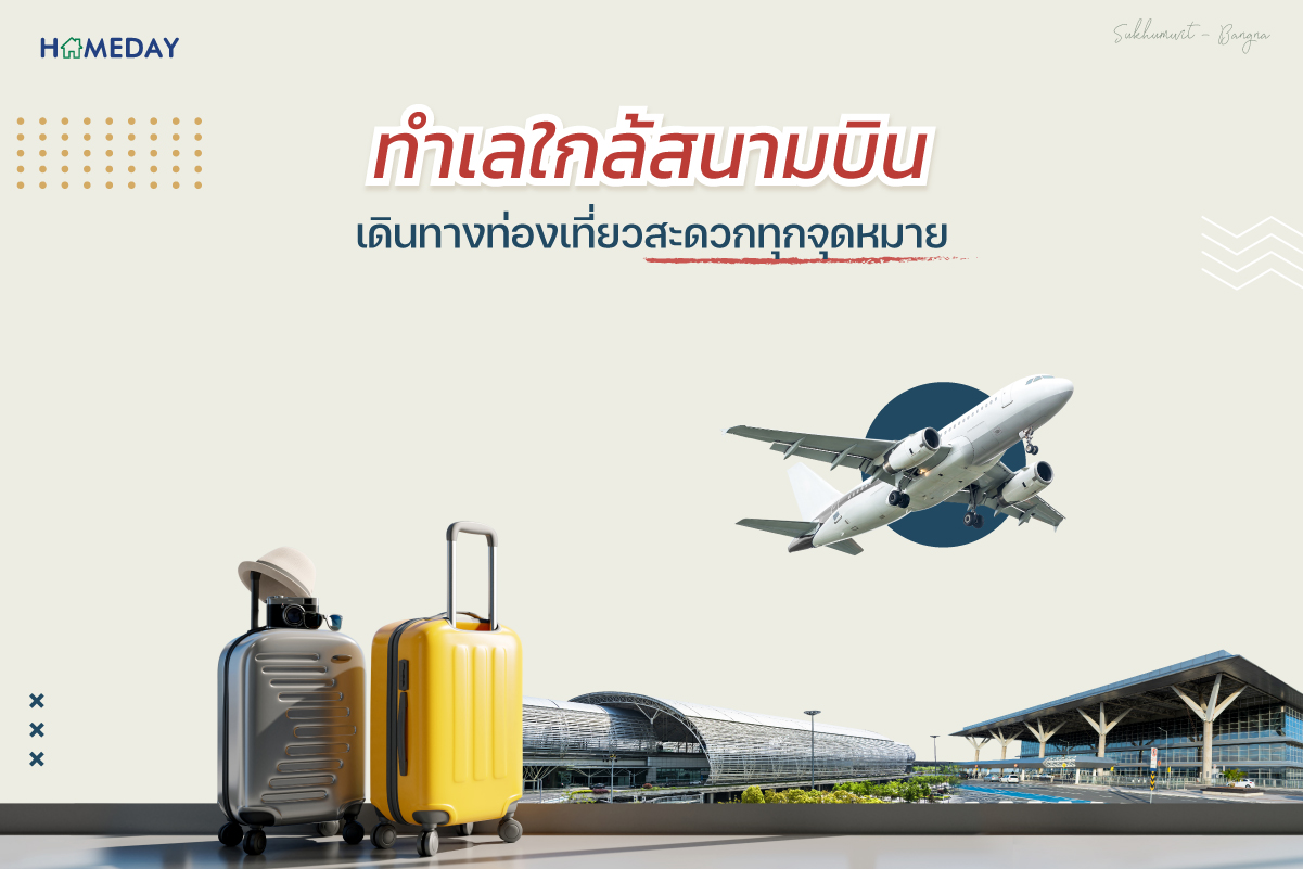 ทำเลใกล้สนามบิน เดินทางท่องเที่ยวสะดวกทุกจุดหมาย หากพูดถึงย่าน “สุขุมวิท-บางนา” จะขาดจุดเด่นเรื่องทำเลใกล้สนามบินไปไม่ได้เลยครับ เพราะถ้าพูดถึงบางนา ก็เป็นอันรู้กันว่าทำเลนี้เป็นทางผ่านเชื่อมต่อไปยังสนามบินสุวรรณภูมินั่นเอง หากใช้รถส่วนตัว ใช้เวลาเพียงแค่ 20-40 นาที ขึ้นอยู่กับการจราจรและระยะทาง ก็เข้าถึงสนามบินได้แล้วครับ หรือหากใครจะเดินทางด้วยรถไฟฟ้าแอร์พอร์ต เรล ลิงก์ จากสถานีบางนา เชื่อมไปยัง Interchange ที่สถานีพญาไท เพียง 30-40 นาที ก็ถึงที่หมายได้เช่นกัน ไม่ว่าจะทำงานสายการบิน หรือเป็นคนที่ชอบเดินทางท่องเที่ยว ก็ต้องถูกใจกับทำเลนี้กันอย่างแน่นอนครับ