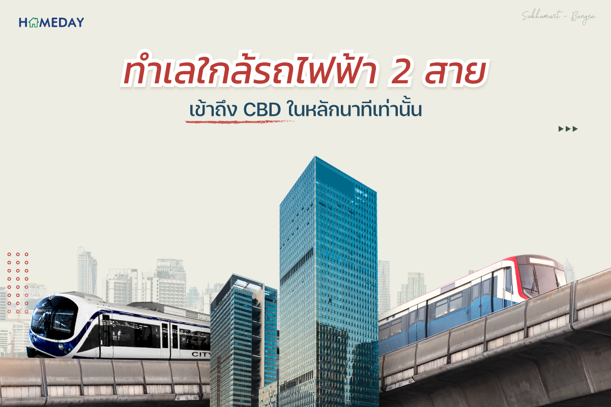 ทำเลใกล้รถไฟฟ้า 2 สาย เข้าถึง CBD ในหลักนาทีเท่านั้น เส้นทางรถไฟฟ้าปัจจุบันที่มีให้บริการในย่าน “สุขุมวิท-บางนา” มีด้วยกัน 2 สาย คือ รถไฟฟ้า BTS สายสีเขียวอ่อน และ รถไฟฟ้าแอร์พอร์ต เรล ลิงก์ โดยรถไฟฟ้าสายสีเขียวอ่อน จะเริ่มต้นตั้งแต่ สถานีเคหะฯ จังหวัดสมุทรปราการ ตัดผ่านบางนาที่สถานีบางนา เชื่อมไปยังสถานีใจกลางเมืองหลากหลาย สามารถ Interchange ไปยังรถไฟฟ้า MRT สายสีน้ำเงิน ได้ที่สถานีอโศก หากอยากเปลี่ยนเส้นทางไปยังรถไฟฟ้า BTS สายสีเขียวเข้ม ก็สามารถไปเปลี่ยนที่สถานีสยามได้ หากอยากเชื่อมต่อกับรถไฟฟ้าแอร์พอร์ต เรล ลิงก์ ก็ลงที่สถานีพญาไทได้เลย เส้นทางนี้ เชื่อมต่อไปจนถึงสนามบินสุวรรณภูมิ ซึ่งอยู่ในเขตใกล้เคียงกับย่านบางนาอีกเช่นกัน