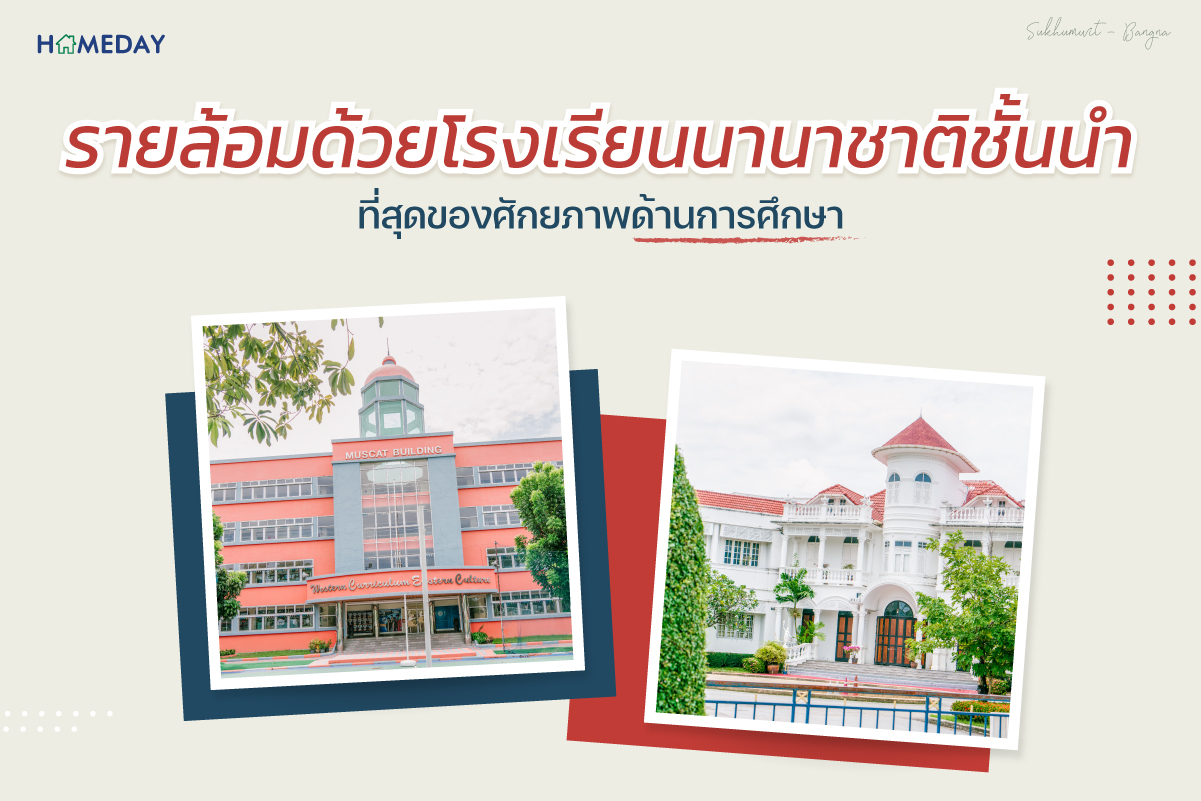 รายล้อมด้วยโรงเรียนนานาชาติชั้นนำ ที่สุดของศักยภาพด้านการศึกษา สำหรับพ่อแม่ ผู้ปกครอง ที่กำลังตามหาที่อยู่อาศัย ในทำเลที่ใกล้กับโรงเรียนนานาชาติชั้นนำ “สุขุมวิท-บางนา” ก็ถือเป็นตัวเลือกแรกที่ต้องจดอยู่ในลิสต์อย่างแน่นอน เพราะที่นี่ ขึ้นชื่อได้ว่าเป็นแหล่งรวมโรงเรียนนานาชาติชั้นนำของประเทศไว้มากที่สุดเลยก็ว่าได้ครับ มีหลักสูตรการสอนหลากหลาย ทั้งหลักสูตรการศึกษาหลักของอังกฤษ (UK) , หลักสูตรการศึกษาของอเมริกา (US) และ หลักสูตรนานาชาติ International Baccalaureate (IB)