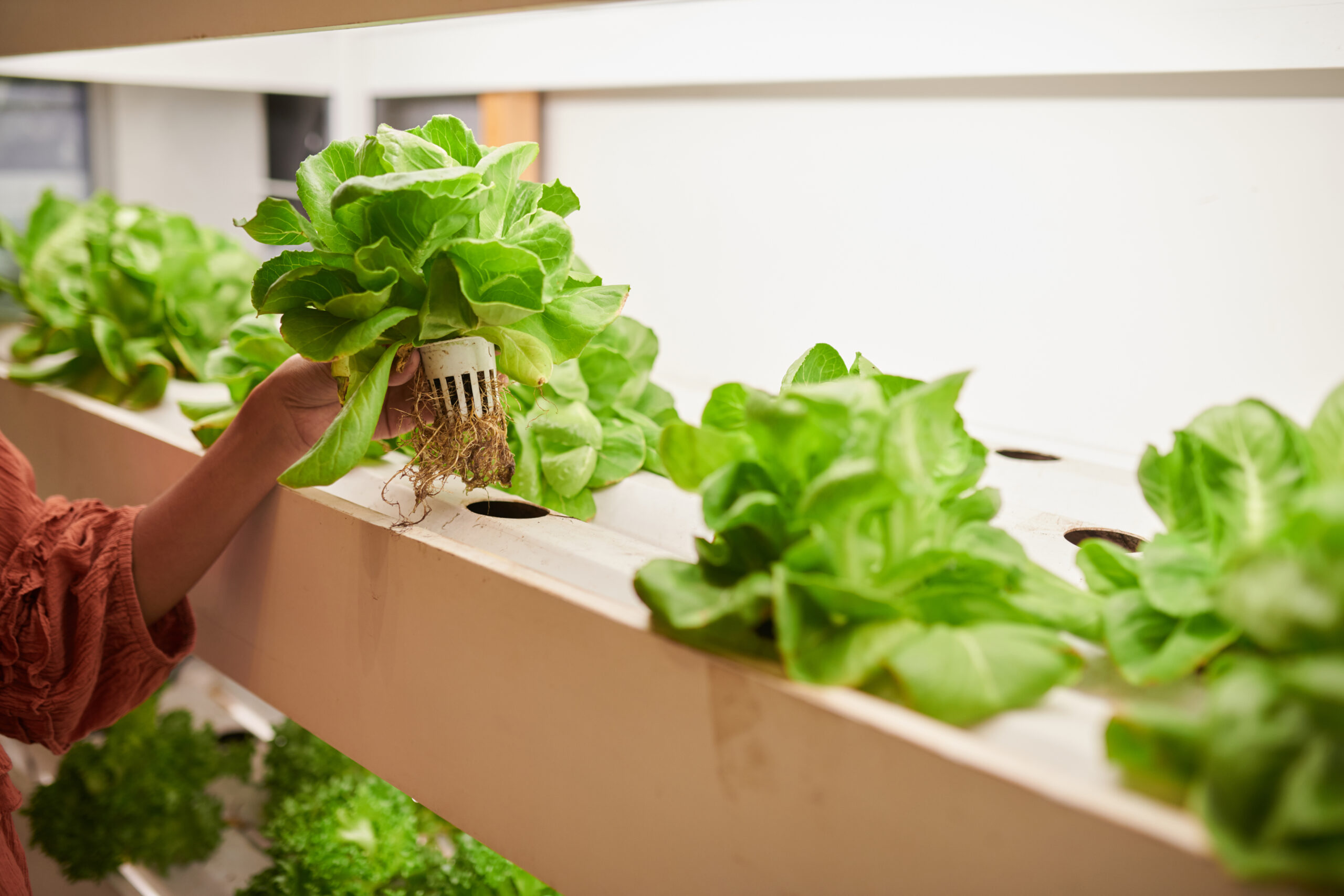 ผักใบที่เหมาะสำหรับมือใหม่ ผักกาดหอมเป็นพืชที่เหมาะสำหรับผู้เริ่มต้นมากที่สุด เนื่องจากเจริญเติบโตเร็ว ใช้เวลาเพียง 30-45 วันก็สามารถเก็บเกี่ยวได้ และสามารถปลูกในระบบไฮโดรโปนิกส์ทุกประเภท ผักกาดหอมยังมีความต้องการสารอาหารไม่สูงมาก และทนต่อการเปลี่ยนแปลงของสภาพแวดล้อมได้ดี
