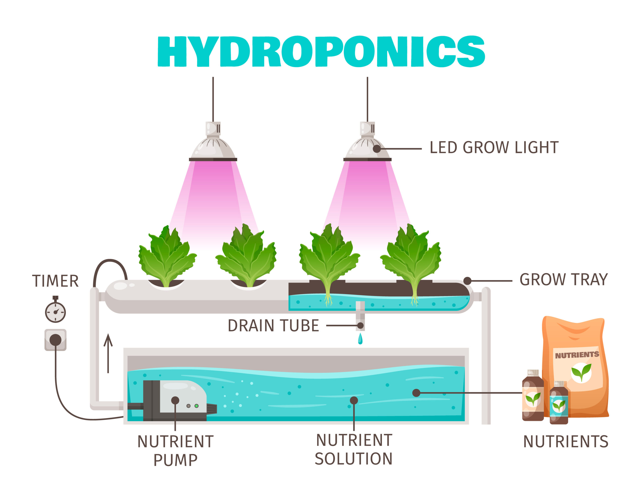 หลักการทำงานของระบบไฮโดรโปนิกส์นั้นอาศัยการให้รากพืชสัมผัสกับสารละลายธาตุอาหารโดยตรง เมื่อรากสัมผัสกับสารละลายนี้ พืชจะสามารถดูดซึมธาตุอาหารและน้ำได้ทันที ทำให้พืชไม่ต้องใช้พลังงานในการค้นหาอาหารในดินเหมือนการปลูกแบบดั้งเดิม พลังงานที่ประหยัดได้จึงสามารถนำไปใช้ในการเจริญเติบโตของส่วนต่างๆ ของพืชได้อย่างเต็มที่