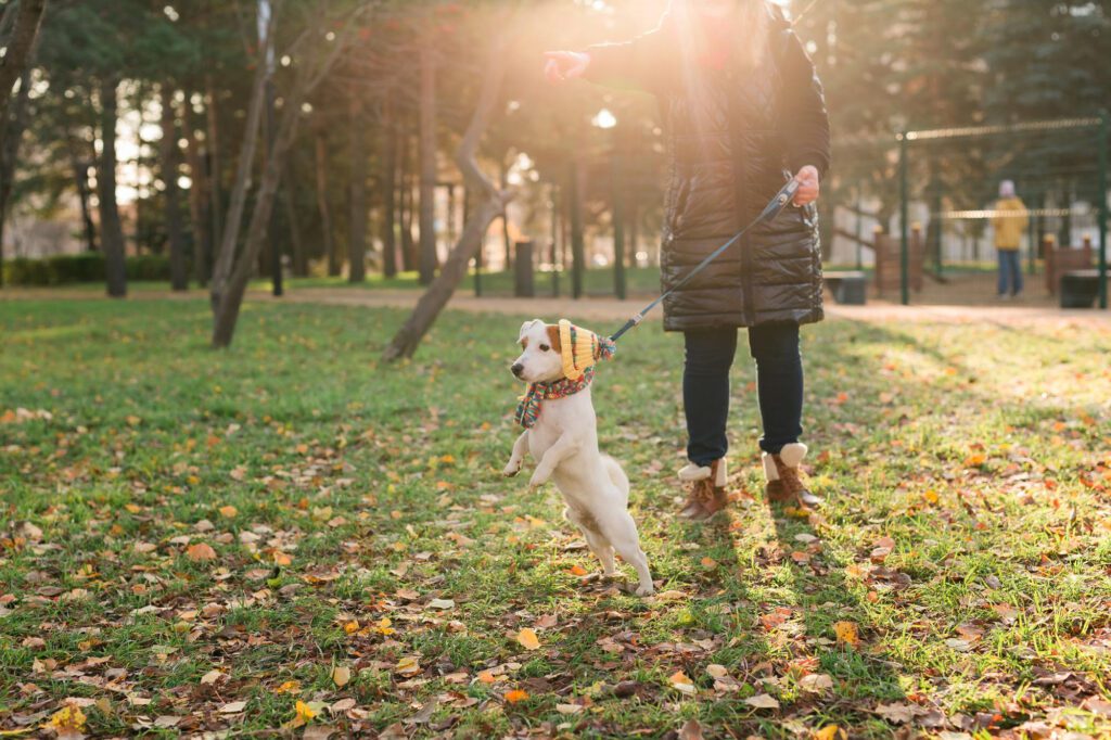 การฝึกให้สุนัขเชื่อฟังคำสั่งพื้นฐานเช่น “นั่ง”, “หยุด”, “มา” และ “ปล่อย” เป็นสิ่งจำเป็นสำหรับความปลอดภัยระหว่างการเดินเล่น โดยเฉพาะในพื้นที่สาธารณะที่มีคนหรือสัตว์อื่นๆ การที่สุนัขตอบสนองต่อคำสั่งอย่างรวดเร็วและแม่นยำจะช่วยป้องกันสถานการณ์อันตรายที่อาจเกิดขึ้นได้ เช่น การวิ่งไล่จับสัตว์อื่น หรือการวิ่งข้ามถนน