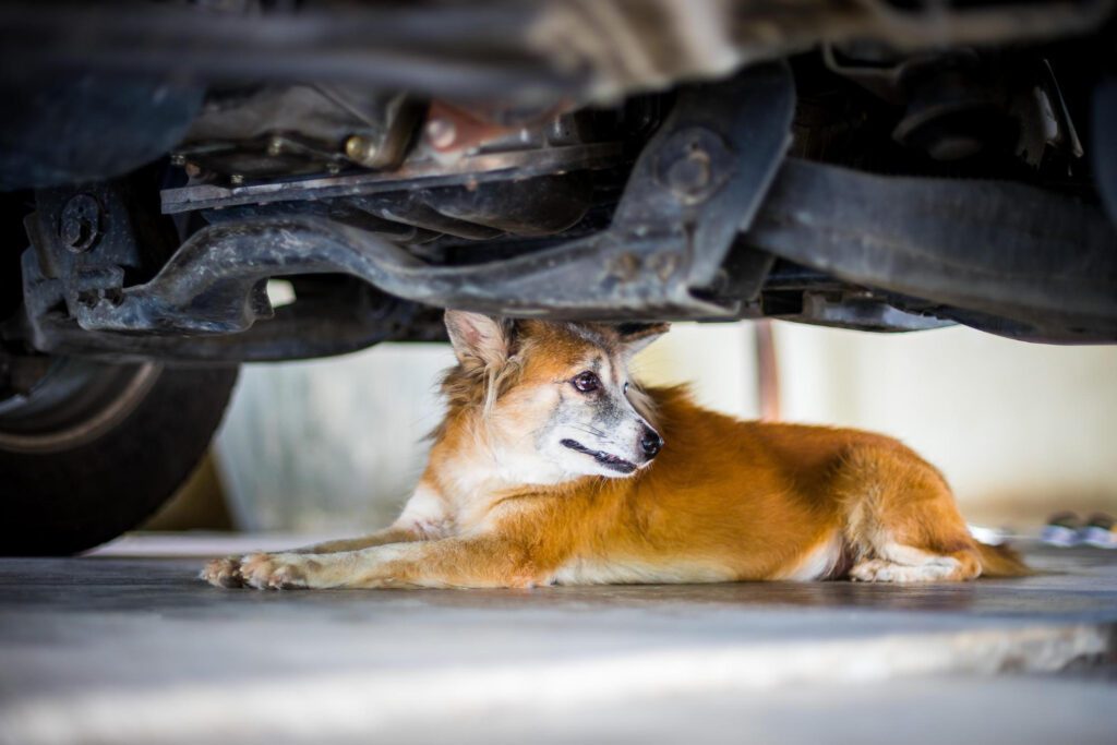 2. อันตรายจากล้อรถและเครื่องยนต์ ล้อรถที่กำลังหมุนสามารถดึงขนหรืออวัยวะของสุนัขเข้าไปติดได้ นอกจากนี้ เครื่องยนต์และท่อไอเสียที่ร้อนอาจทำให้เกิดแผลไหม้รุนแรงหากสุนัขสัมผัส