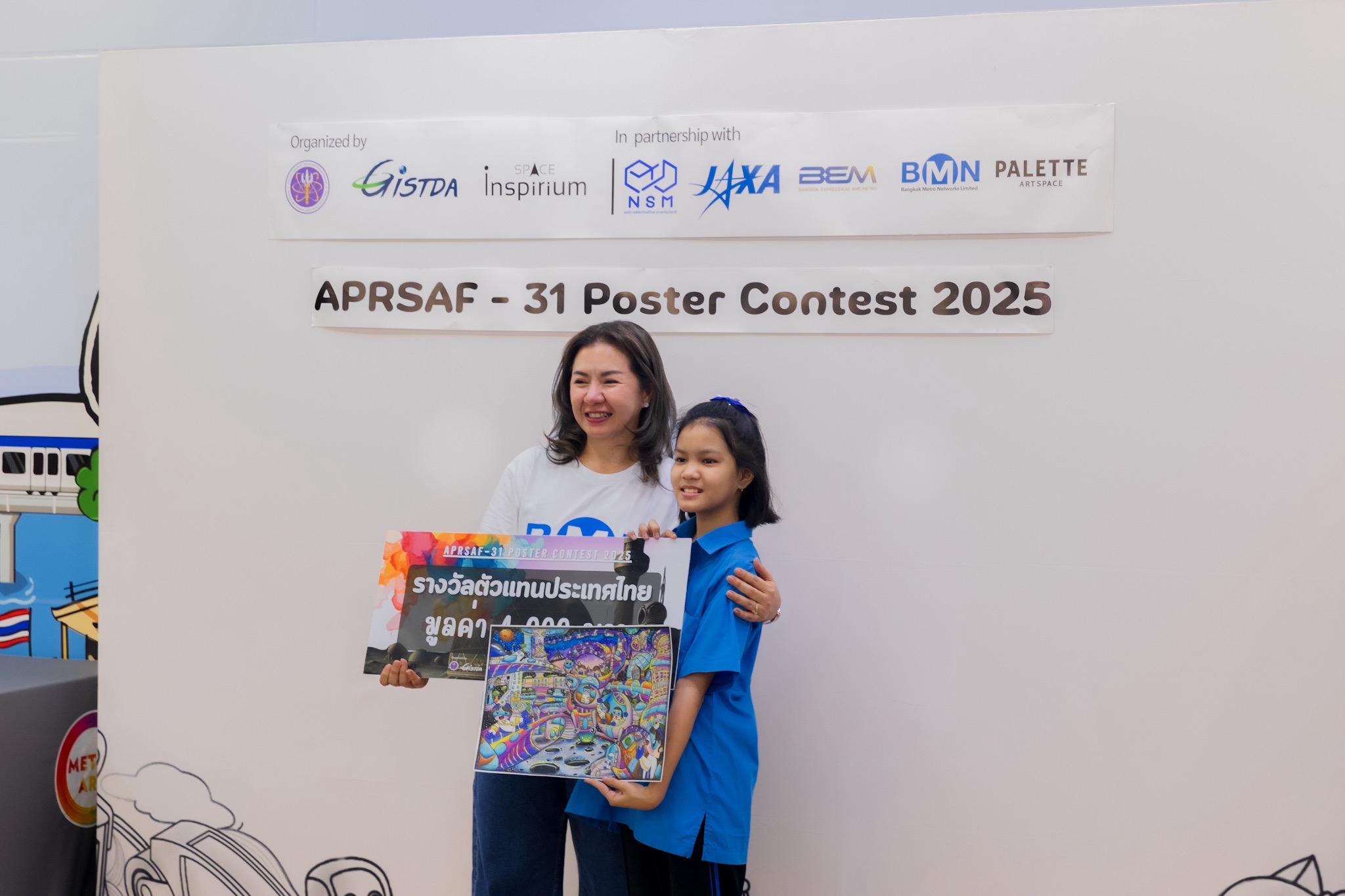 Metro Art อาร์ตสเปซใจกลางเมือง ณ สถานี MRT พหลโยธิน เดินหน้ายกระดับการสนับสนุนศิลปะและเยาวชนไทยอย่างต่อเนื่อง โดยในปีนี้ บริษัท ทางด่วนและรถไฟฟ้ากรุงเทพ จำกัด (มหาชน) หรือ BEM ร่วมกับ บริษัท แบงคอก เมโทร เน็ทเวิร์คส์ จำกัด (BMN) เปิดพื้นที่ Metro Art ให้เป็นสถานที่จัดกิจกรรมประกวดภาพวาด APRSAF – 31 Poster Contest 2025 (รอบวาดสด และรอบชิงชนะเลิศ) ในหัวข้อ “Lunar City” หรือ “เมืองบนดวงจันทร์” ซึ่งจัดโดย สำนักงานพัฒนาเทคโนโลยีอวกาศและภูมิสารสนเทศ (GISTDA) เพื่อส่งเสริมให้เยาวชนได้พัฒนาทักษะความคิดสร้างสรรค์ การสื่อสารผ่านงานศิลปะ ถ่ายทอดจินตนาการอันไร้ขอบเขต ผ่านผลงานศิลปะที่สะท้อนอนาคตของมนุษยชาติในบริบทของการเดินทางและการใช้ชีวิตนอกโลก และเปิดโอกาสในการเป็นตัวแทนประเทศไทยเข้าร่วมเวทีนานาชาติภายใต้การประชุมองค์กรด้านอวกาศในภูมิภาคเอเชีย-แปซิฟิก (Asia-Pacific Regional Space Agency Forum: APRSAF-31) ณ สถานีรถไฟฟ้า MRT พหลโยธิน