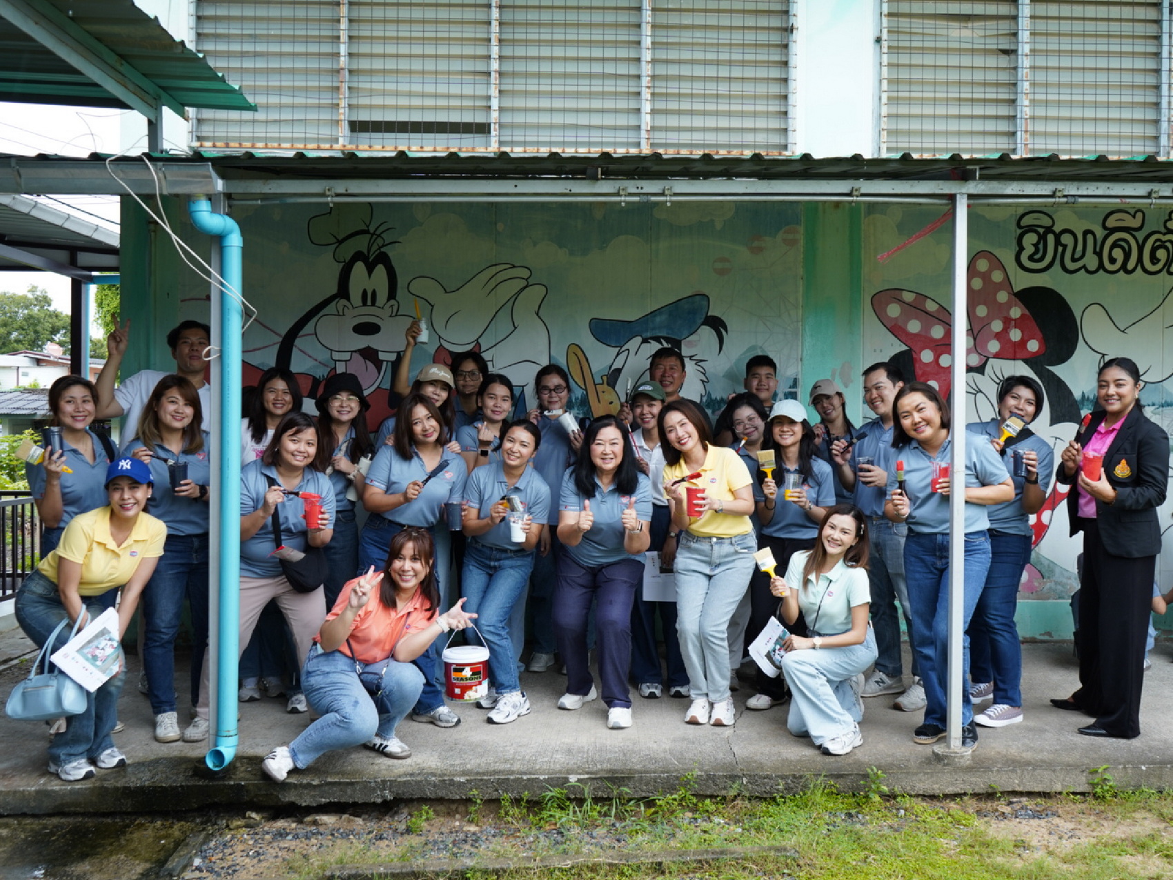 – ออกแบบและทาสีภาพบนกำแพงอาคารอเนกประสงค์ เพื่อสร้างบรรยากาศในการเรียนรู้