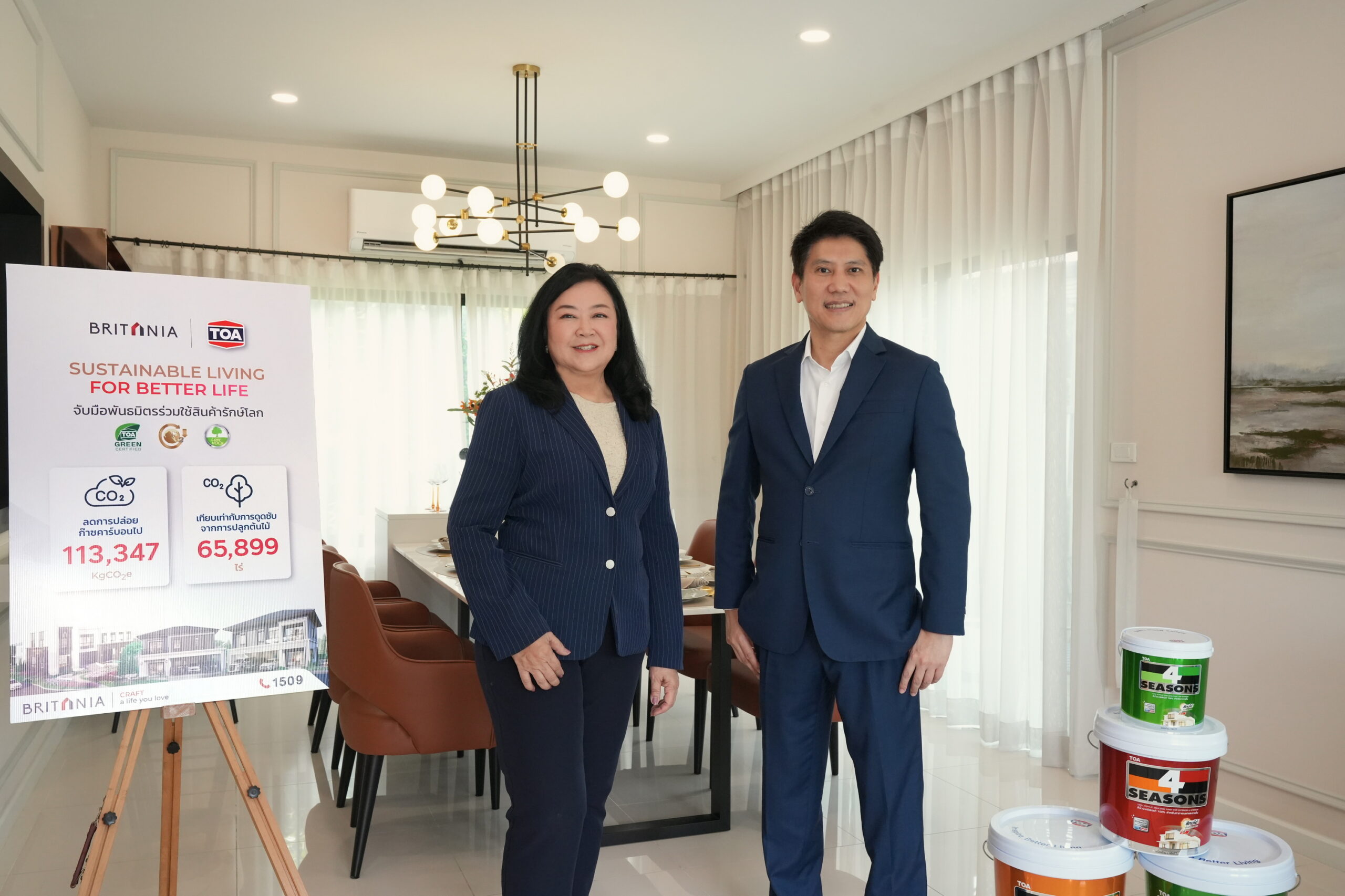 “บริทาเนีย” มุ่งมั่นพัฒนาที่อยู่อาศัยเพื่อสังคมที่ดีอย่างยั่งยืนสู่สังคมลดคาร์บอน ล่าสุดจับมือ “ทีโอเอ” พันธมิตรองค์กรสีเขียวผู้นำนวัตกรรมสี – เคมีภัณฑ์ก่อสร้างของไทย ร่วมส่งมอบบ้านลดคาร์บอน ด้วยนวัตกรรมสีที่ปลอดภัยต่อสุขภาพและสิ่งแวดล้อม ผ่านการรับรองมาตรฐานฉลาก NanoQ จากศูนย์นาโนเทคโนโลยีแห่งชาติ และเครื่องหมายรับรอง “ฉลากลดโลกร้อน” จาก TGO เพื่อยกระดับคุณภาพชีวิตที่ดีให้กับลูกค้า นำร่อง