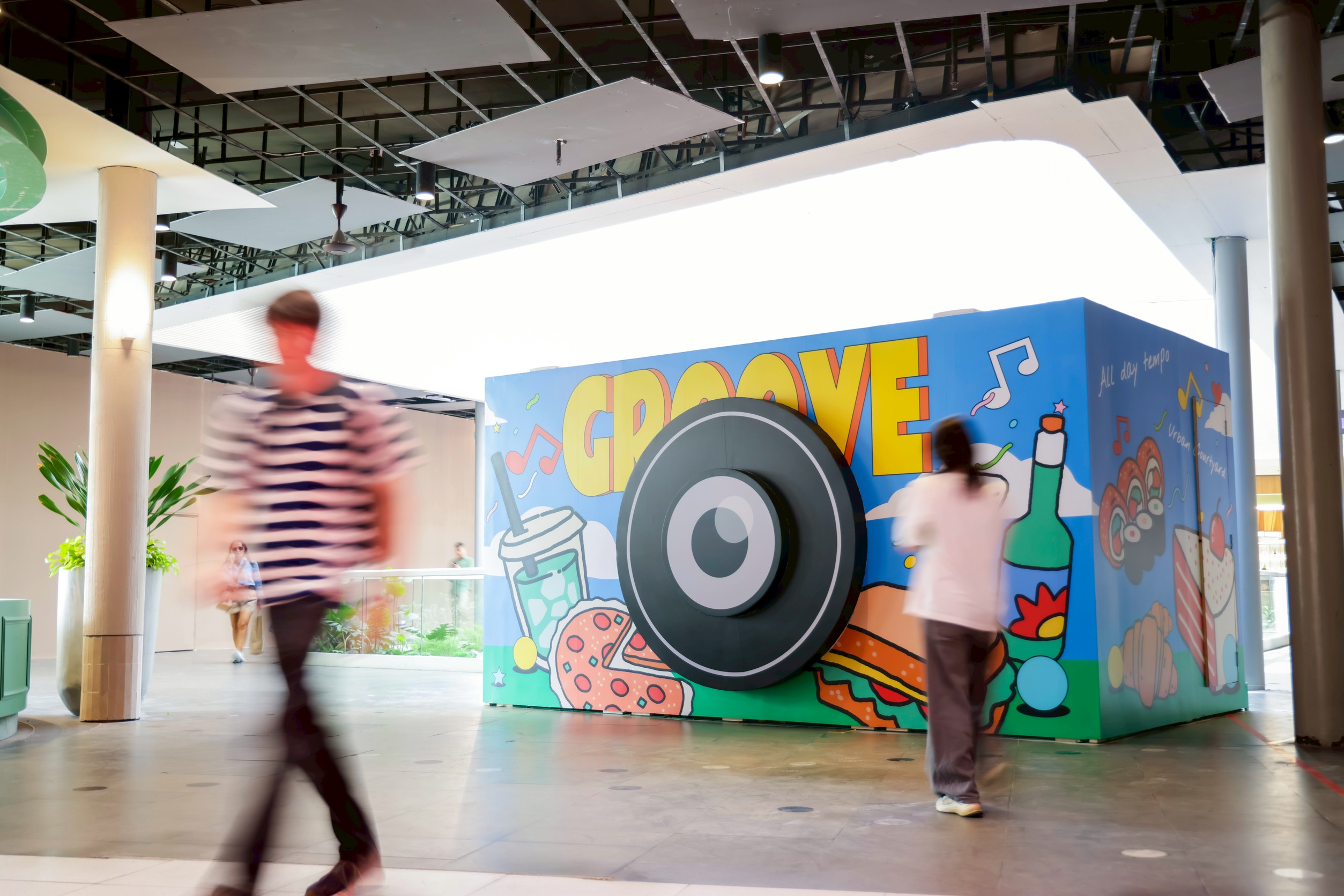 ศูนย์การค้าเซ็นทรัลเวิลด์: ศูนย์การค้าระดับโลกใจกลางกรุงเทพฯ ตอกย้ำบทบาท Creative District ผ่านพื้นที่ Groove ที่กลับมาพร้อมมุมมองใหม่ ‘Urban Courtyard’ พื้นที่เชื่อมโยงผู้คน ชีวิต และความคิดสร้างสรรค์ ถ่ายทอดวัฒนธรรมเมืองผ่านศิลปะ งานออกแบบ และไลฟ์สไตล์ ภายใต้แนวคิด Groove: Glows by day. Flows by night. ช่วงกลางวัน City Glow สะท้อนไลฟ์สไตล์และการพักผ่อน ขณะที่ช่วงค่ำ City Flow ถ่ายทอดการสังสรรค์ อาหาร ดนตรี และเมืองยามค่ำคืน พร้อมกิจกรรมไฮไลต์ตลอดเทศกาล โดยในครั้งนี้ได้คุณนิกม์ จินตวร – the eternal summer ศิลปินและนักวาดภาพประกอบรุ่นใหม่ ถ่ายทอดเรื่องราวของผู้คนและวิถีเมือง ด้วยแนวคิด “The Groover” ผ่าน 2 ผลงานศิลปะ