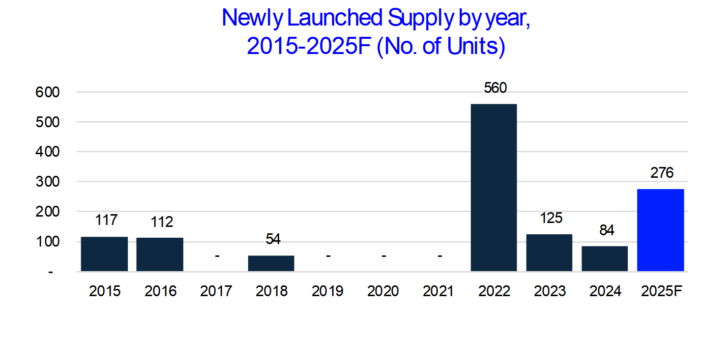สำหรับในช่วงครึ่งแรกของปีที่ผ่านมาพบว่าในพื้นที่เกาะสมุยมีการเปิดตัวโครงการคอนโดมิเนียมใหม่เพียง 1 โครงการเท่านั้น ในพื้นที่บ่อผุด ซึ่งพัฒนาโดยผู้พัฒนาจีน ประกอบด้วยยูนิตขายทั้งหมด 218 ยูนิต ซึ่งโครงการดังกล่าวได้รับความสนใจจากผู้ซื้อเป็นอย่างมาก โดยมียอดขายแล้วกว่า 72.93% ของยูนิตทั้งหมดและพบว่ามีกำลังซื้อต่างชาติเหมาซื้อบางอาคาร นอกจากนี้ยังมีโครงการคอนโดมิเนียมบางโครงการที่สามารถขายหมดภายในเวลาเพียง 9 เดือนหลังการเปิดตัว สะท้อนถึงความร้อนแรงของตลาดและความต้องการที่อยู่อาศัยบนเกาะสมุย ฝ่ายวิจัยและการสื่อสาร คอลลิเออร์ส ประเทศไทยคาดการณ์ว่า ในครึ่งหลังของปีพ.ศ. 2568 อาจมีโครงการคอนโดมิเนียมใหม่อีกประมาณ 2 โครงการเข้าสู่ตลาด ส่งผลให้ในปีพ.ศ. 2568 อาจมีคอนโดมิเนียมเปิดขายใหม่รวมตลอดปีสูงถึง 276 ยูนิต