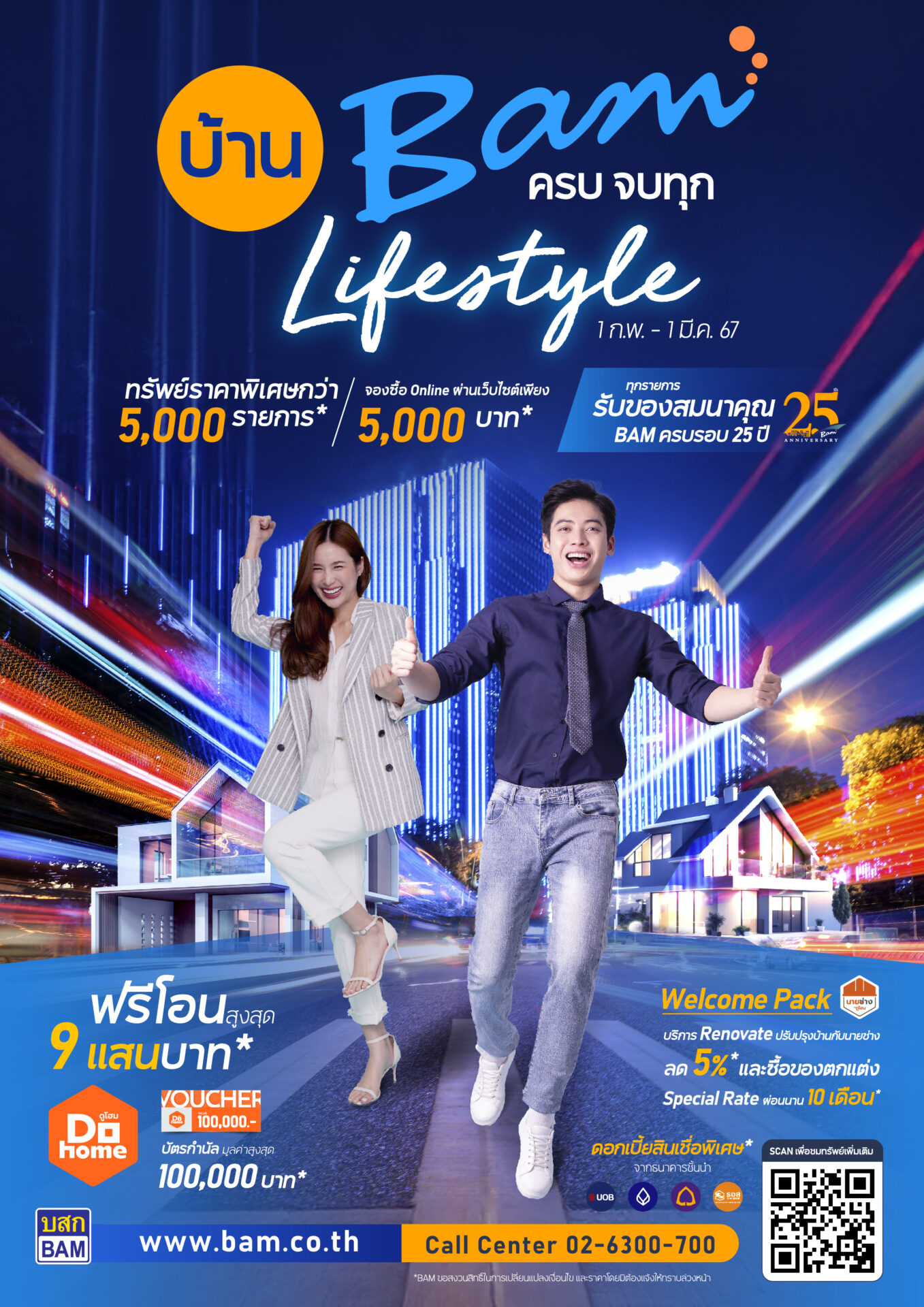 BAM จัดแคมเปญ “บ้าน BAM ครบจบทุก Lifestyle” คัดที่อยู่อาศัยทั่วประเทศกว่า 5,000 รายการ ให้ลูกค้าเลือกช็อปตั้งแต่วันนี้ ถึงวันที่ 1 มีนาคม 2567 พร้อมรับโปร “ โอนเร็ว รับเลย 3 ต่อ ” ฟรีค่าโอนสูงสุด 900,000 บาท ต่อรายการทรัพย์ รับบัตรกำนัลมูลค่าสูงสุด 100,000 บาท และรับฟรี Gift Set ลูกค้าที่ซื้อทรัพย์อัตราดอกเบี้ยพิเศษจากธนาคารพันธมิตร รับส่วนลดบริการปรับปรุงบ้านจาก “นายช่าง” โดย Dohome ผ่อนของตกแต่งบ้านเบาๆ นาน 10 เดือน