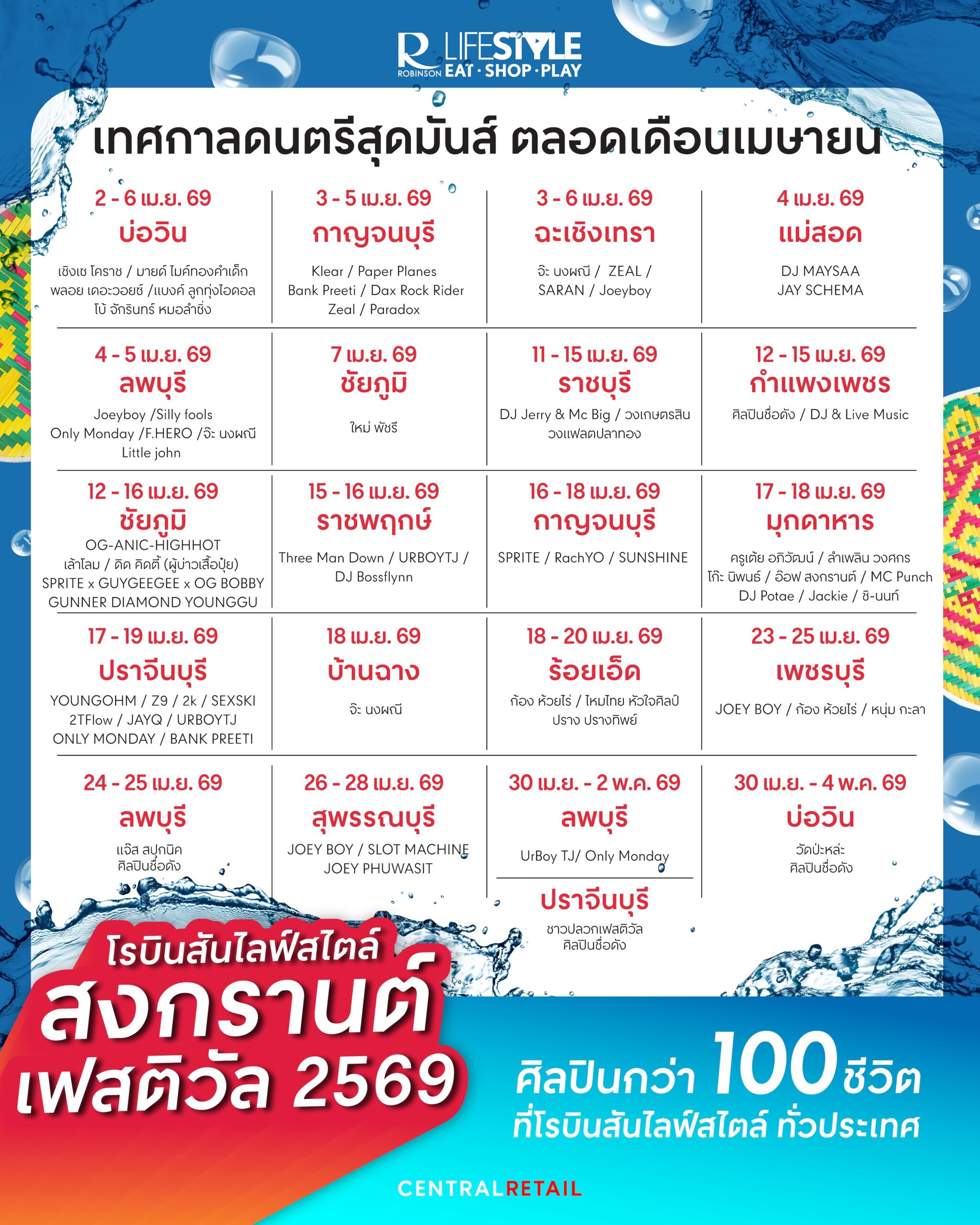 โรบินสันไลฟ์สไตล์ สาดความสนุกฉ่ำทั่วไทย ยิ่งใหญ่ฉลองสงกรานต์ ในงาน “Summer Fest – Songkran Festival 2569” เทศกาลดนตรีสุดมันส์ ยกทัพศิลปินกว่า 100 ชีวิต ตลอดเดือนเมษายน 2569 ที่โรบินสันไลฟ์สไตล์ทั่วประเทศ - Homeday Space | HOMEDAY