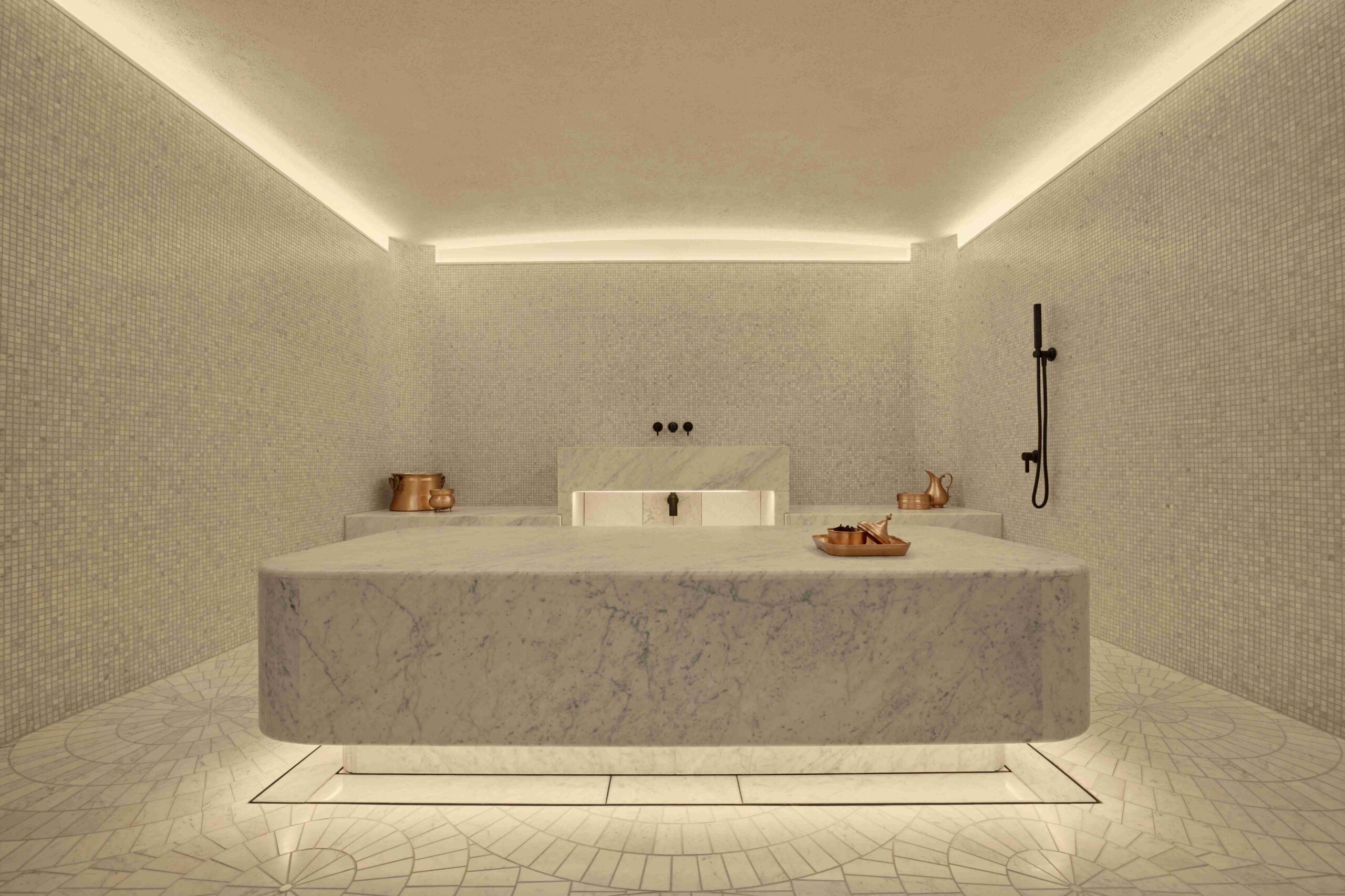 Adam Farmerie ผู้ร่วมก่อตั้งบริษัท AvroKO กล่าวว่า “Six Senses London ได้รับแรงบันดาลใจจากแนวคิดด้านสุนทรียภาพในยุค The Great Exhibition ซึ่งมักเน้นการตัดกันของโทนสีขาวและดำ โดยแทนที่จะจำลองโทนสีดังกล่าวโดยตรง เราเลือกเติมเฉดสีเขียวเข้มลงในหินอ่อนบริเวณล็อบบี้และรายละเอียดทางสถาปัตยกรรม เพื่อถ่ายทอดยุคสมัยนั้นผ่านมุมมองที่เชื่อมโยงกับธรรมชาติมากยิ่งขึ้น อย่างไรก็ตาม ตู้จัดแสดง (Vitrines) ยังคงได้รับการเก็บรักษาไว้ แต่เปลี่ยนบทบาทจากการจัดแสดงวัตถุมาเป็นการนำพรรณไม้มาจัดแสดง ความโปร่งใสของพื้นที่ ตั้งแต่บันไดกลางอาคารไปจนถึงห้องอาบน้ำกระจกภายในห้องพัก ช่วยให้แสงธรรมชาติส่องผ่านได้อย่างอิสระ และเปลี่ยนบทบาทของพื้นที่จากการเป็น ‘สิ่งจัดแสดง’ ไปสู่ประสบการณ์ที่โอบล้อมผู้มาเยือนมากยิ่งขึ้น”